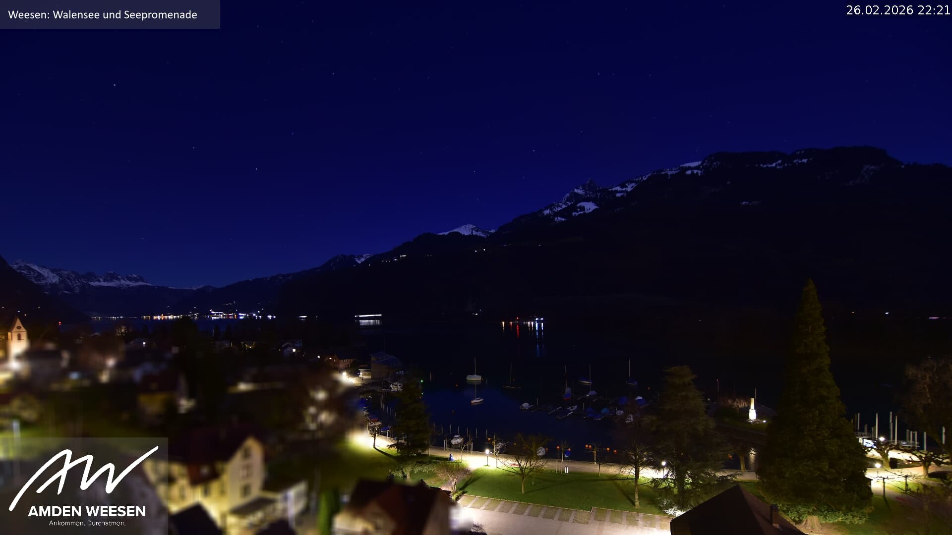 Archiviertes Webcam Bild: Weesen – Blick auf den See am 26 Feb 2026 um 22:12 Uhr Aktuell