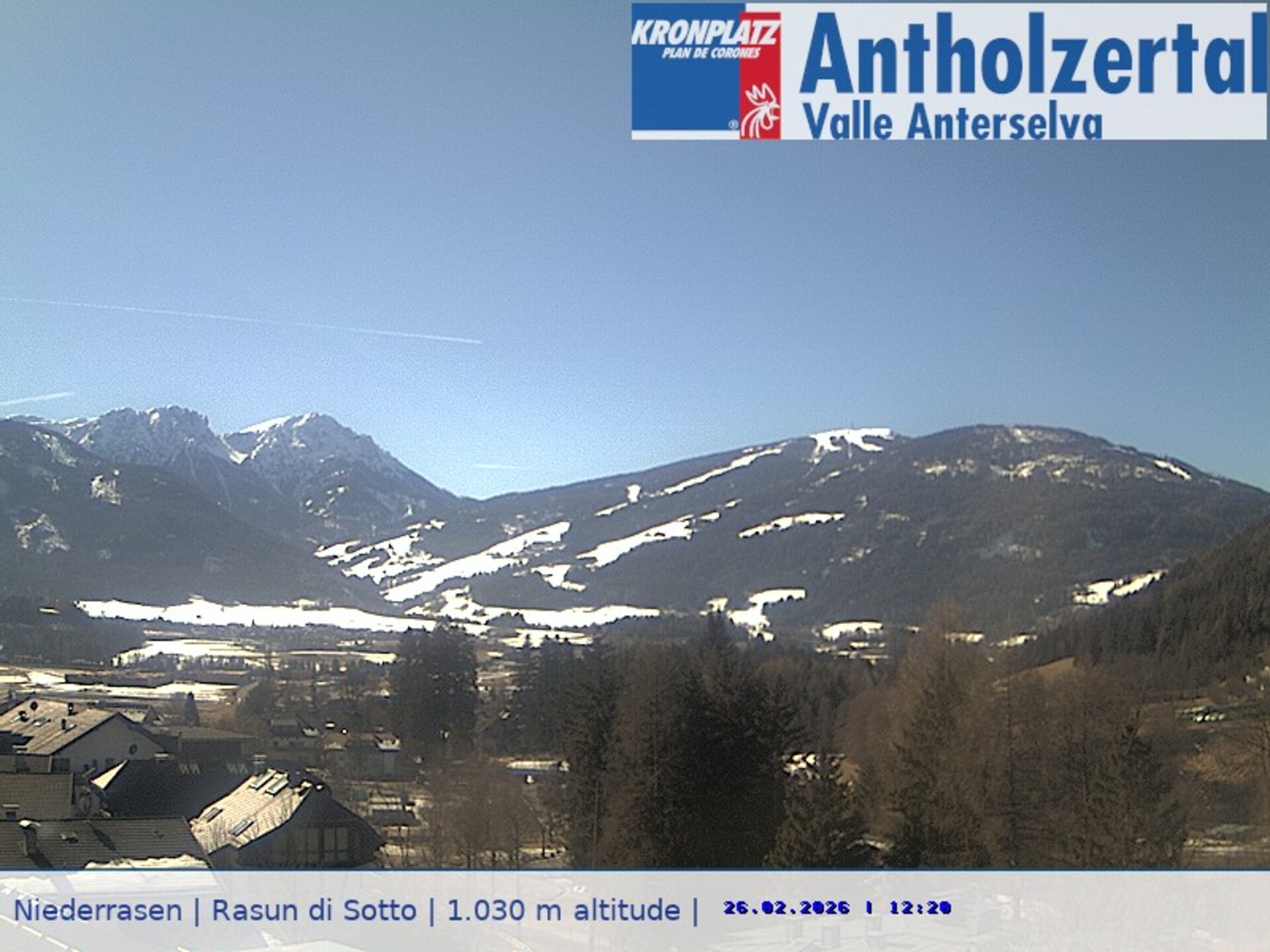 Archiviertes Webcam Bild: Rasen Dorf mit Blick Richtung Kronplatz am 26 Feb 2026 um 12:24 Uhr 11:00