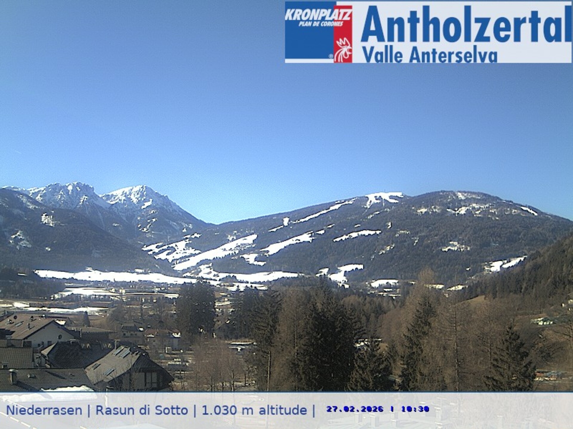 Webcam Rasen Dorf mit Blick Richtung Kronplatz, 1,022 m
