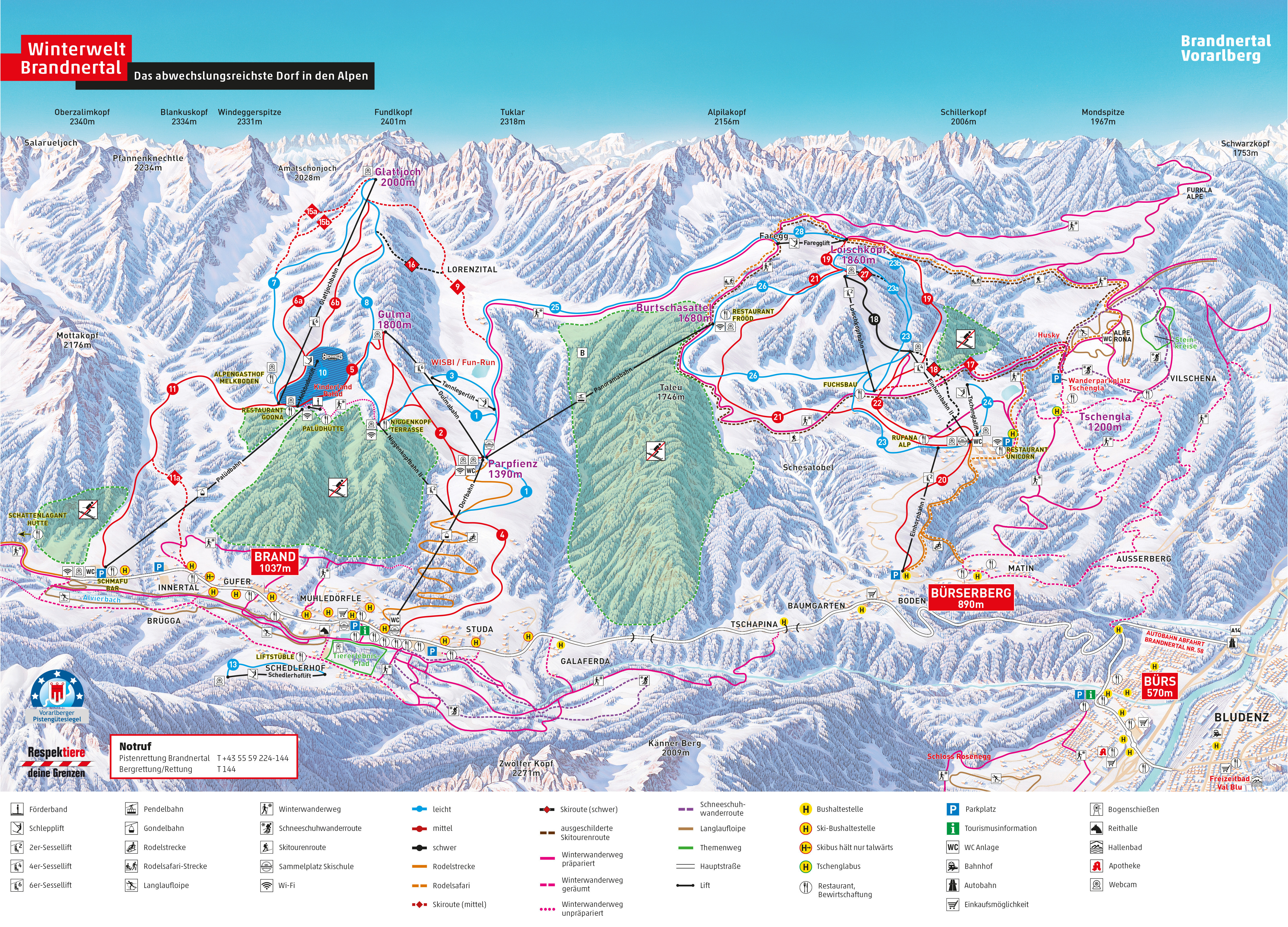 Langlaufgebiet Brandnertal in der Alpenregion Bludenz: Position auf der Karte