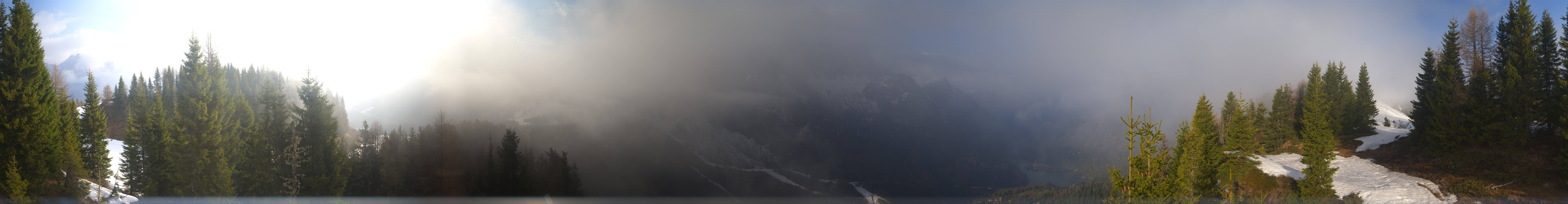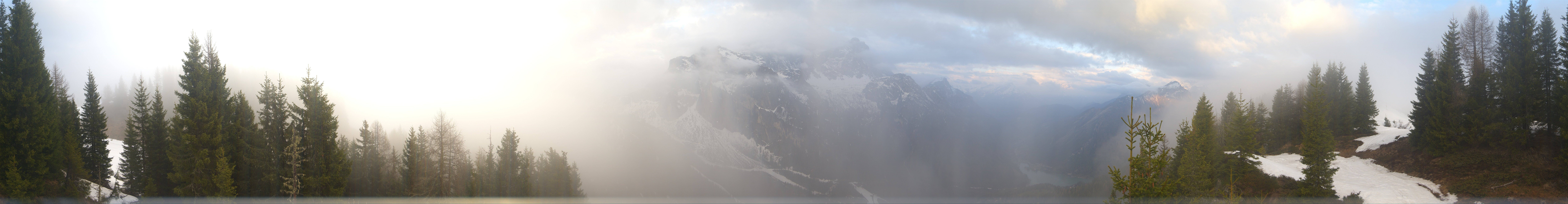 Die Panoramakamera blickt von der Bergstation des Fertazza Sessellifts auf die umliegende Bergwelt Bellunos. Zu sehen sind u.a. die Gipfel des Monte Pelmo (3168 m) und Monte Civetta (3220 m).