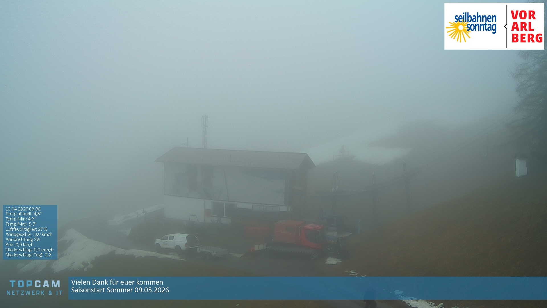 Archiviertes Webcam Bild: Seilbahnen Sonntag: Bergstation Pendelbahn am 13.04.2026 um 08:28 Uhr Aktuell