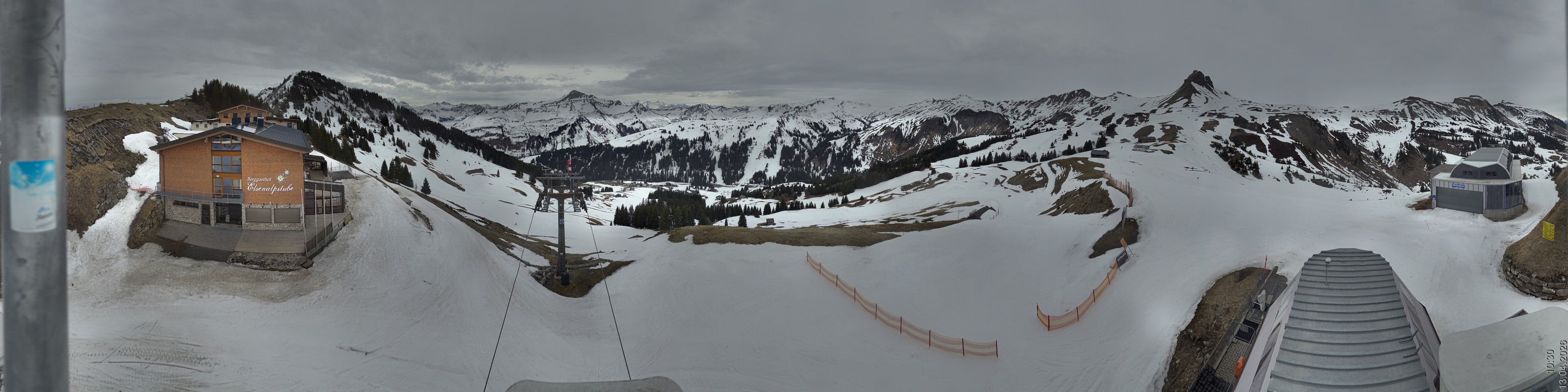 Archiviertes Webcam Bild: Damüls: Bergstation Uga Express Panoramakamera am 13.04.2026 um 10:52 Uhr Aktuell