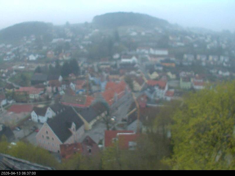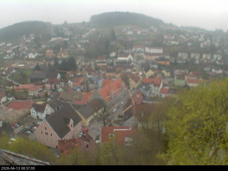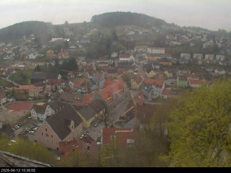 Webcam mit Blick auf den bayerischen Ort Falkenstein im Landkreis Cham. Das Wahrzeichen der Stadt ist die Burg Falkenstein.
