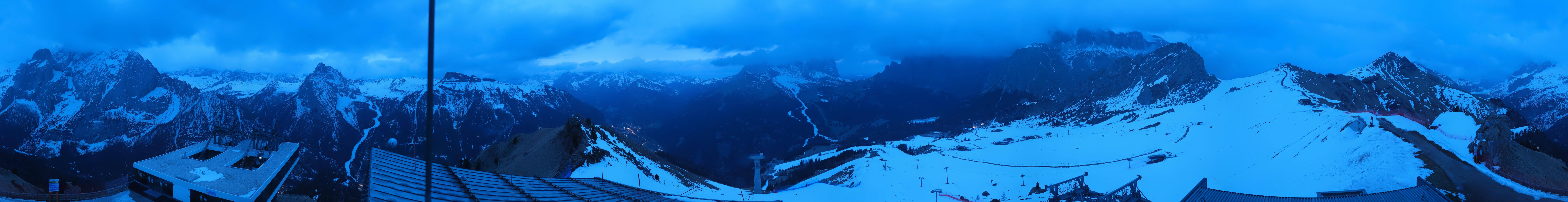 Die Webcam zeigt die Aussicht vom Col dei Rossi in Canazei auf die Lifte unterhalb des Sellastocks. Es ist ein Teil der Sella Ronda, die die Skigebiete Gröden, Alta Badia und Arabba mit dem Fassatal verbindet.