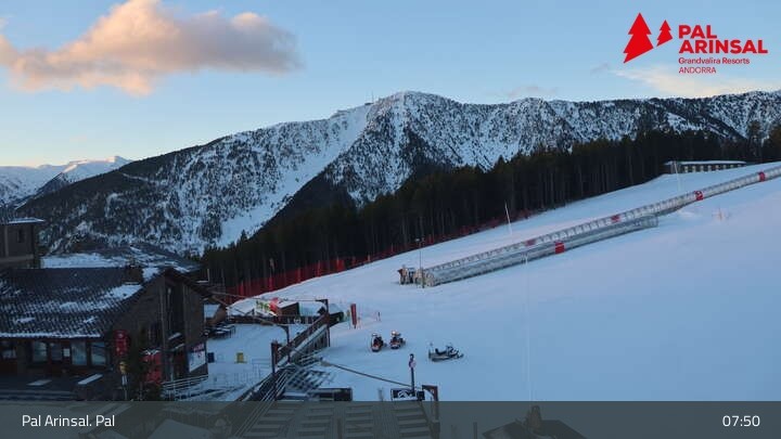 Die Webcam eröffnet den Blick auf die Talstation der Bahn La Massana im Skiverbund Vallnord Pal Arinsal (Andorra). Zudem ist der Zauberteppich El Planell und die gleichnamige Piste zu sehen.