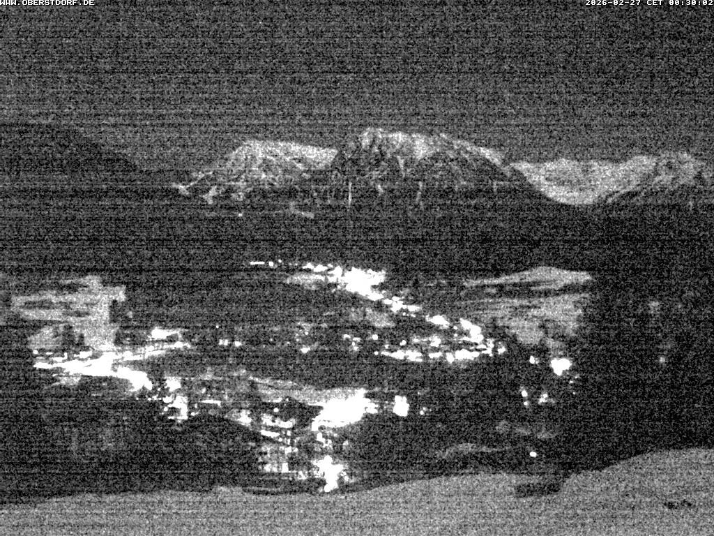 Die Webcam blickt vom Geißberg hinunter auf Tiefenbach und Wasach. Im Hintergrund sind das Nebelhorn und das Rubihorn zu erkennen.