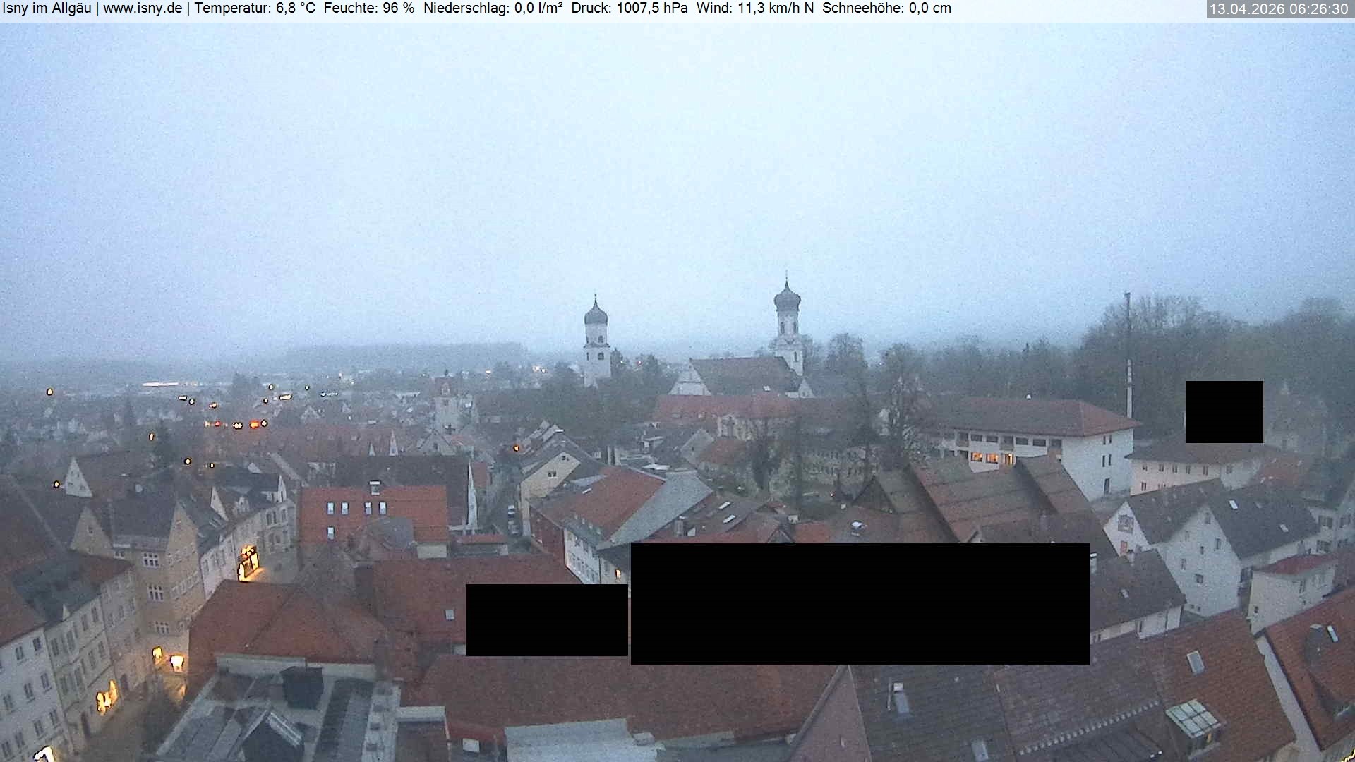 Archived webcam image showing Isny (Allgäu) on 13 Apr 2026 at 06:26 Aktuell