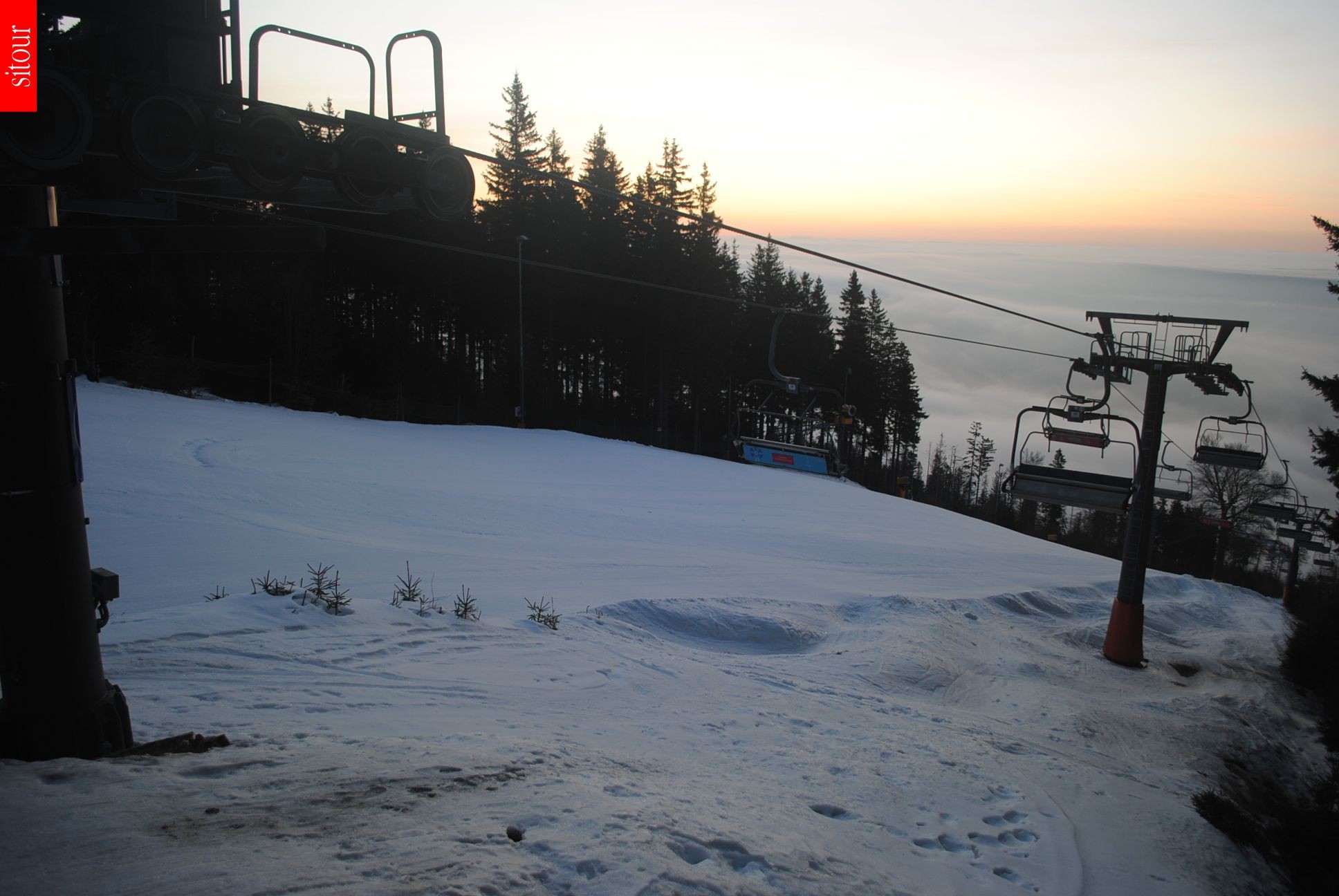 Diese Webcam zeigt den 4er Sessellift (B) im tschechischen Skigebiet Černá Hora, der Wintersportler auf eine Höhe von 1.005 Meter befördert.