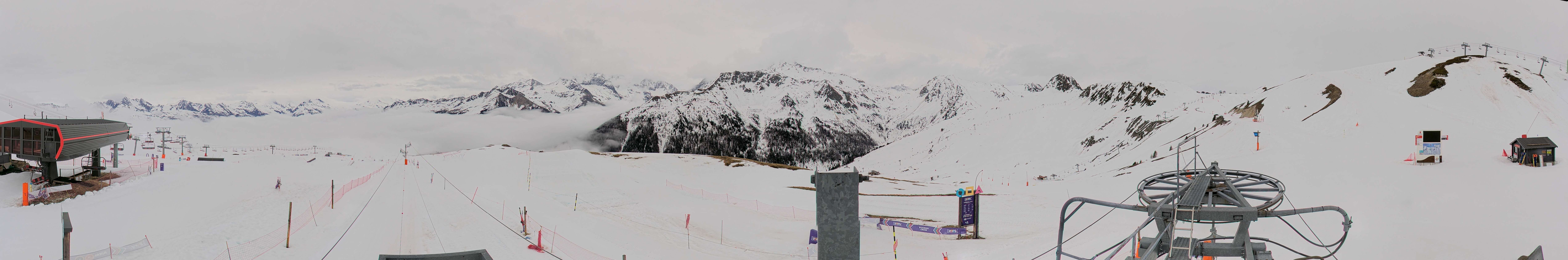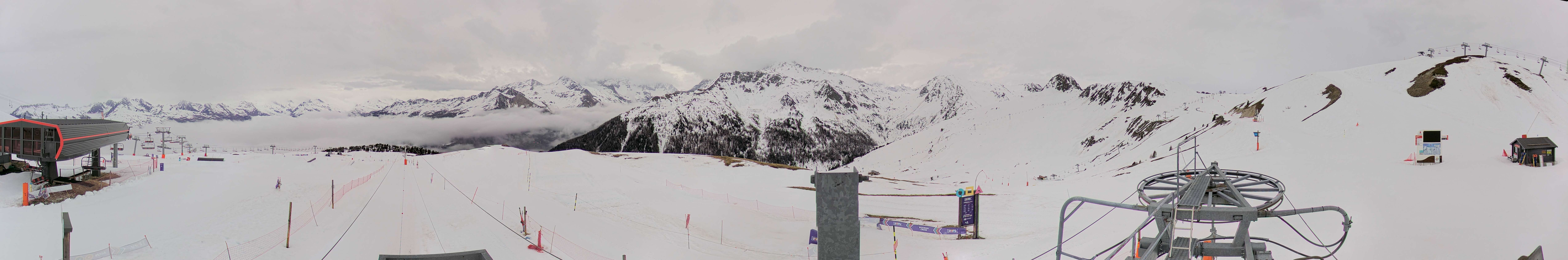 Archiviertes Webcam Bild: La Plagne - Bergstation Sessellift Bijolin am 13.04.2026 um 10:15 Uhr Aktuell