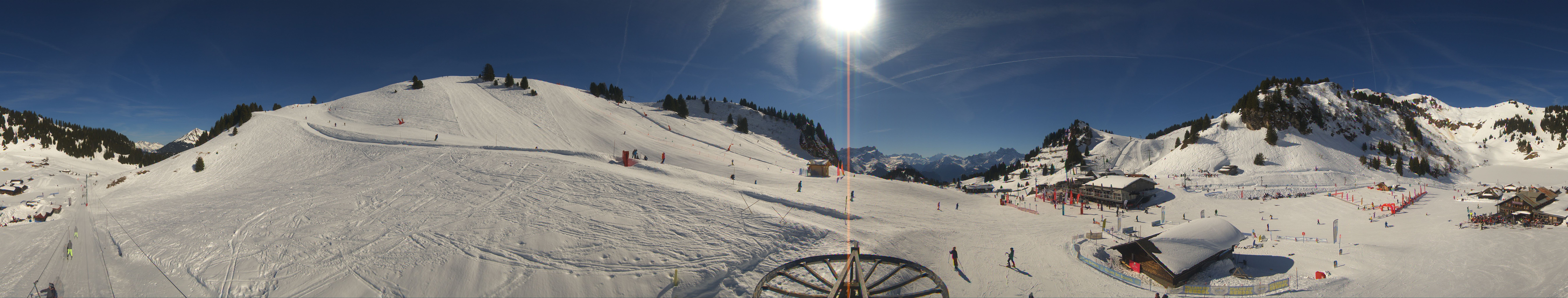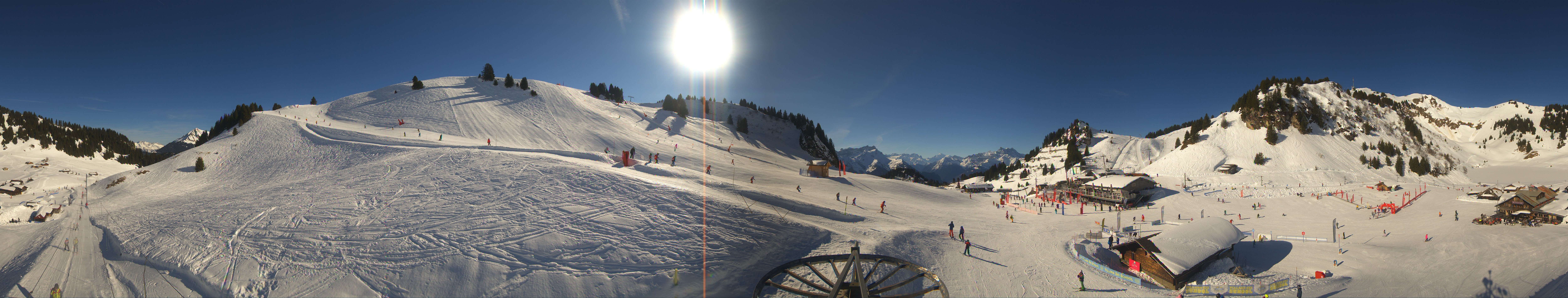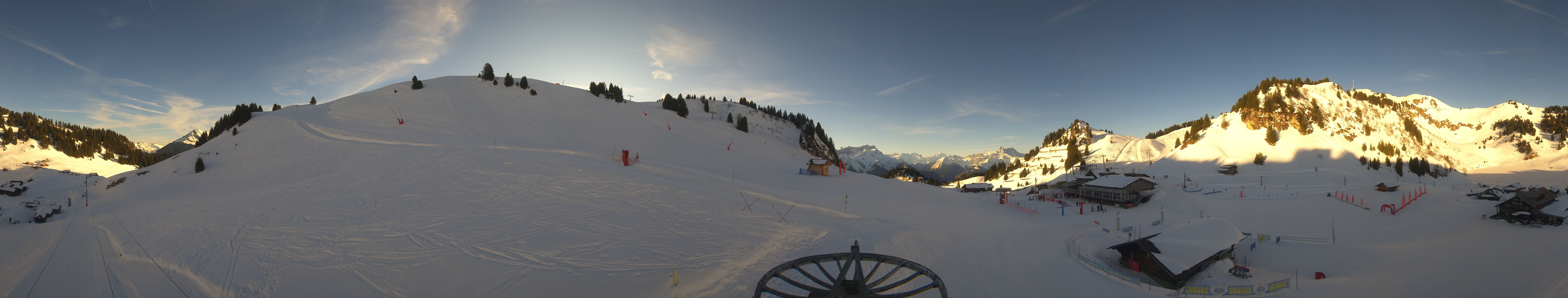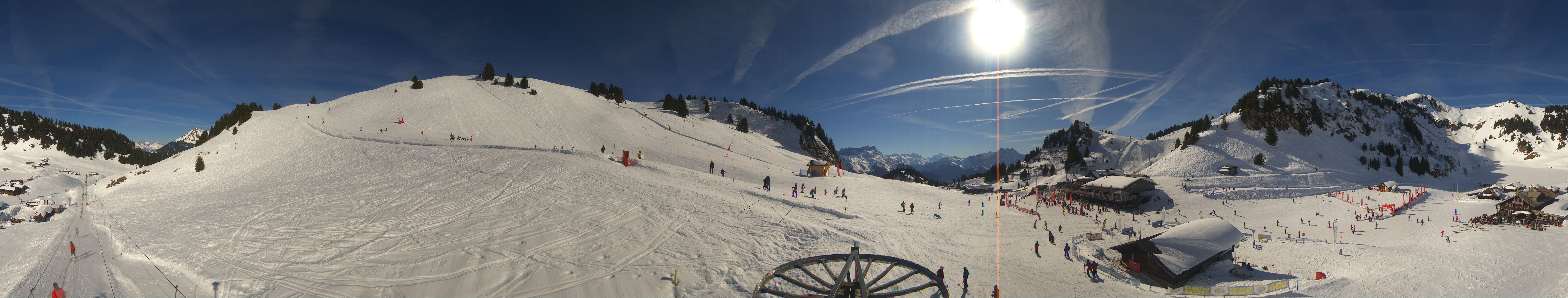 Die Kamera befindet sich auf einer Höhe von 1.810m und zeigt die Pisten und Liftanlagen rund um Bretaye in Villars.