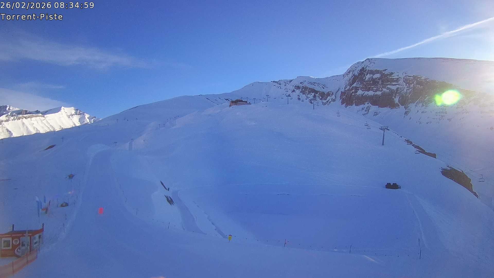 Archiviertes Webcam Bild: Leukerbad Torrent - Rinderhütte Pisten am 26 Feb 2026 um 08:29 Uhr 07:00