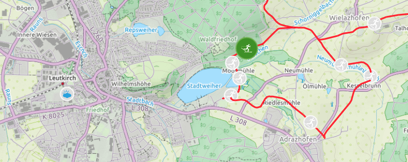 Langlaufgebiet Leutkirch im Allgäu: Position auf der Karte