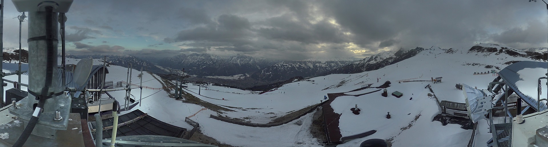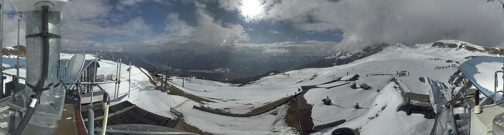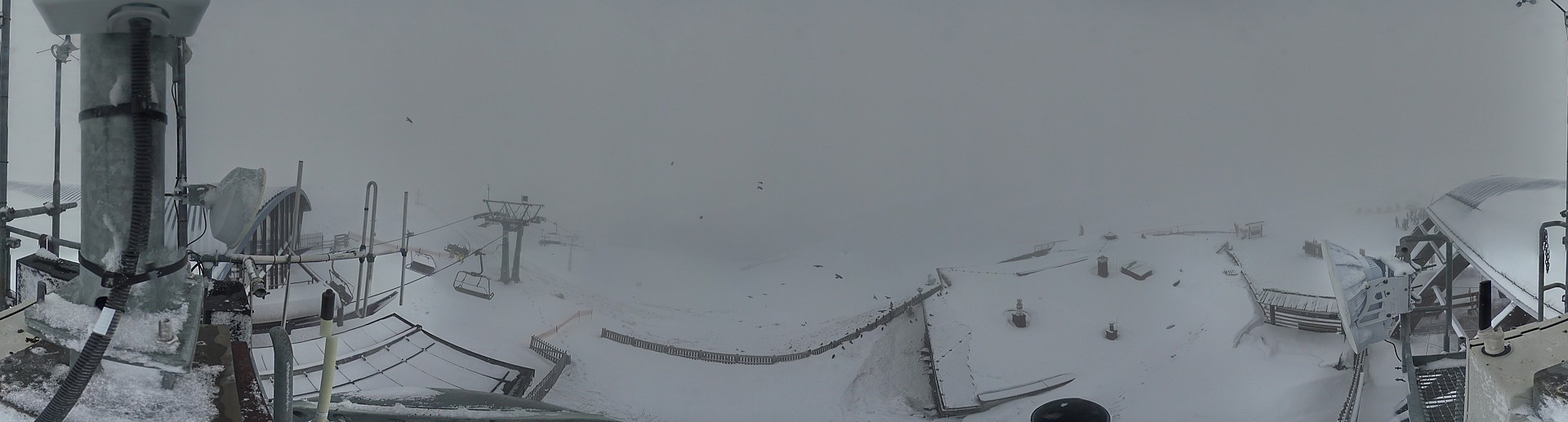 Die 360-Grad-Kamera befindet sich direkt an Bergstation der 4er Sesselbahn Steinermandl und bietet den idealen Blick auf die verschneiten Pisten des Skigebietes Zettersfeld.