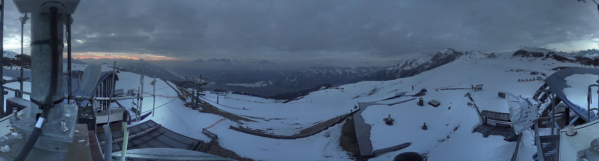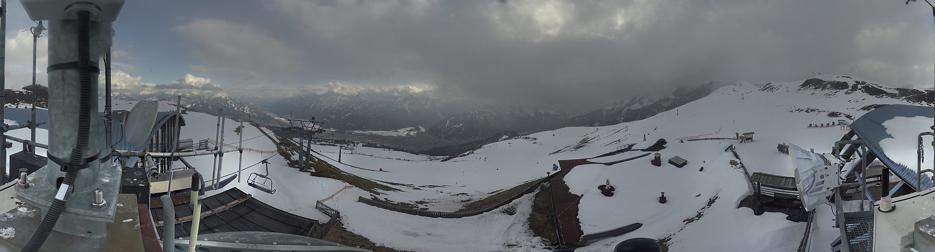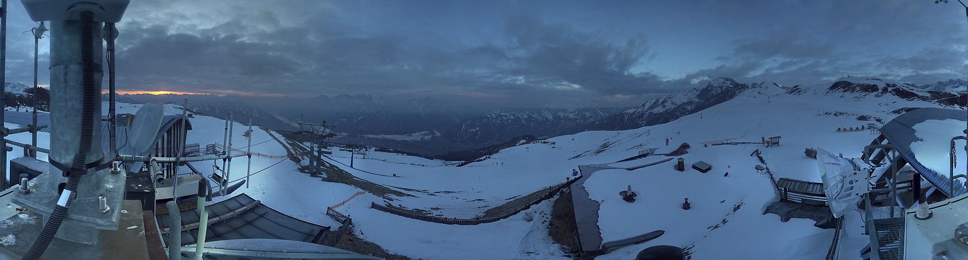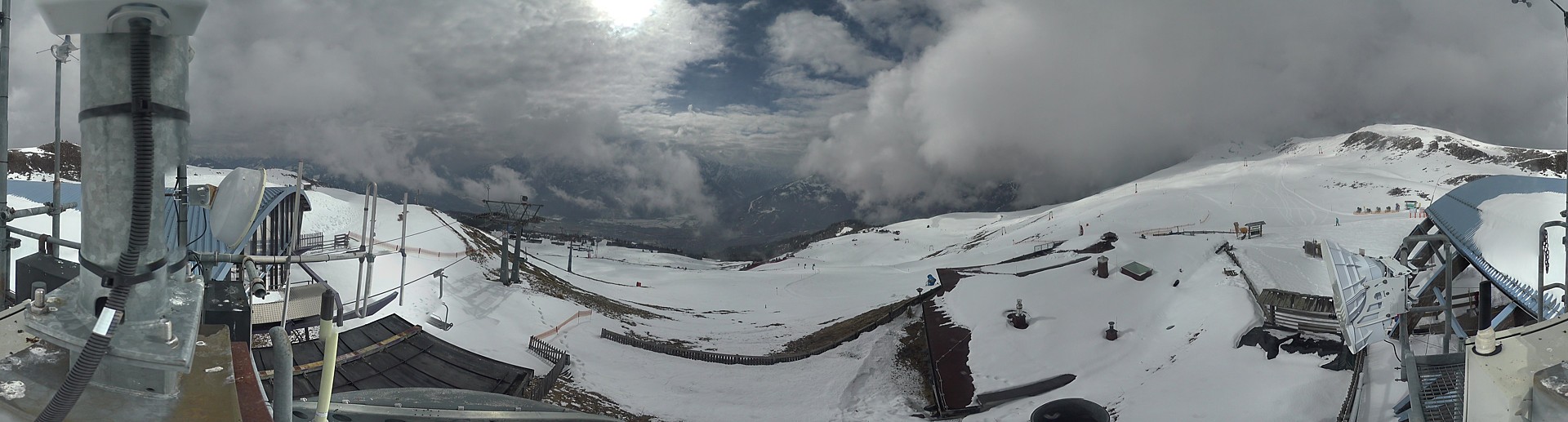 Die 360-Grad-Kamera befindet sich direkt an Bergstation der 4er Sesselbahn Steinermandl und bietet den idealen Blick auf die verschneiten Pisten des Skigebietes Zettersfeld.
