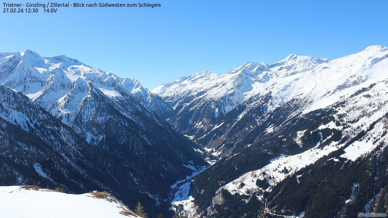 Archived webcam image showing Tristner/ Zillertal - Grinberg on Feb 26, 2026 at 12:19 PM 06:00