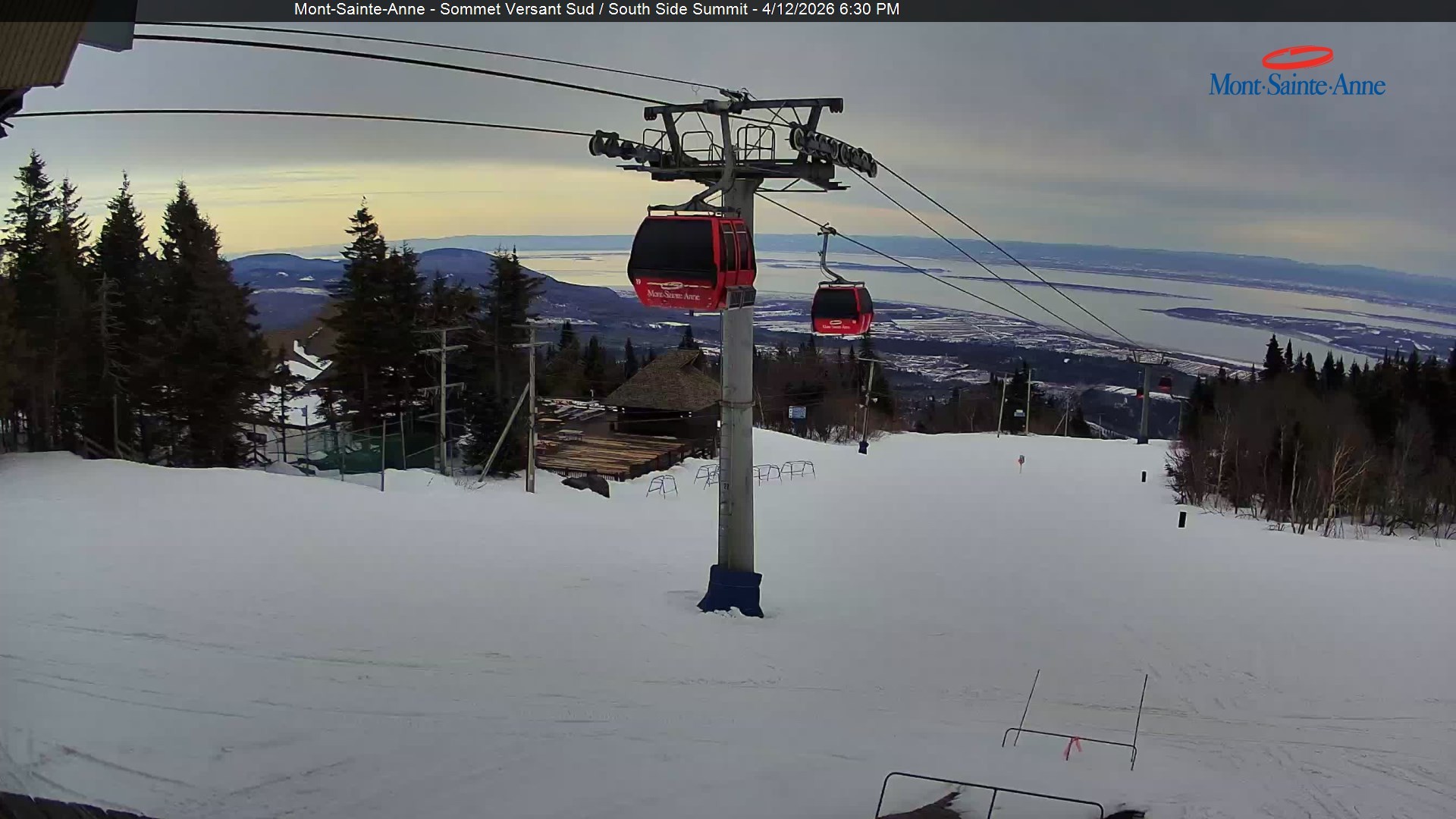 Diese Webcam zeigt den Blick vom Gipfel des Mont Sainte Anne nahe der kanadischen Großstadt Quebec Richtung Süden. Der Gipfel befindet sich ca. 800 Meter ü. NN. Das Skigebiet Mont Sainte Anne zählt mit seinen 31 Abfahrten zu den größeren Skigebieten in Kanada.