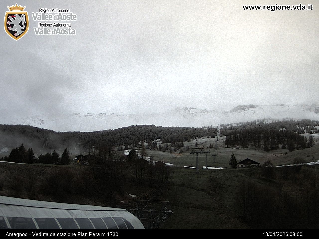 Archiviertes Webcam Bild: Antagnod Talstation am 13.04.2026 um 08:51 Uhr Aktuell