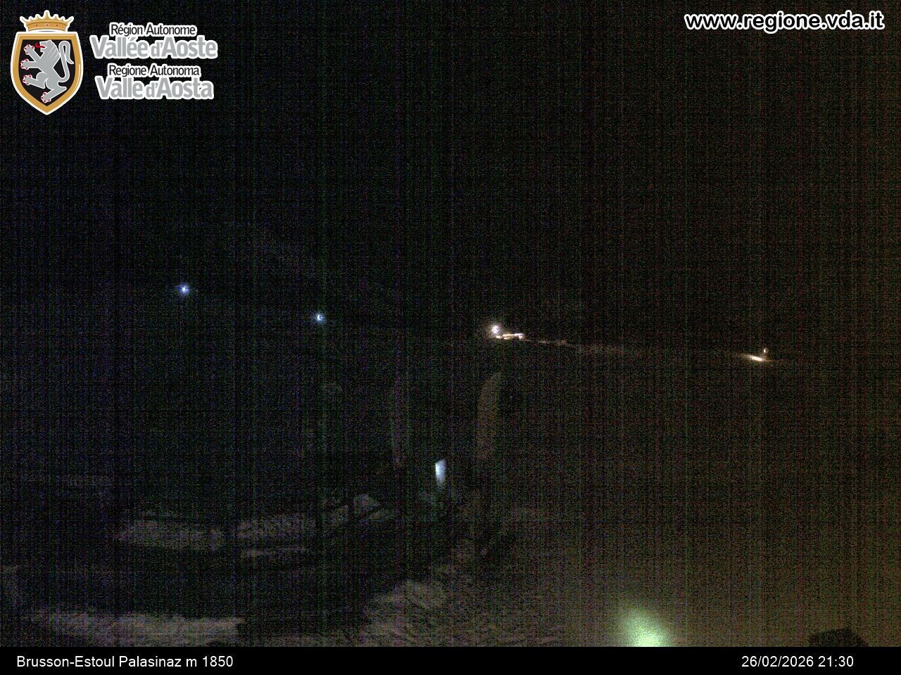 Archiviertes Webcam Bild: Brusson - Blick auf die Piste am 26 Feb 2026 um 02:36 Uhr 01:00