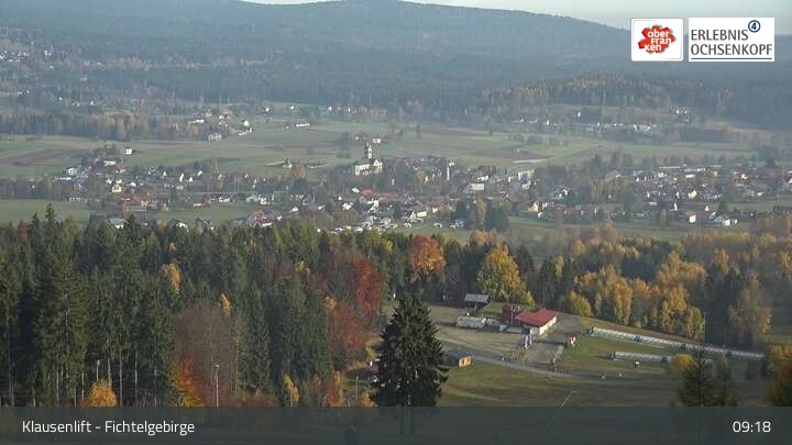 Die Webcam befindet sich an den Klausenliften im Fichtelgebirge und blickt über Mehlmeisel bis zum Schneeberg und dem Ochsenkopf.