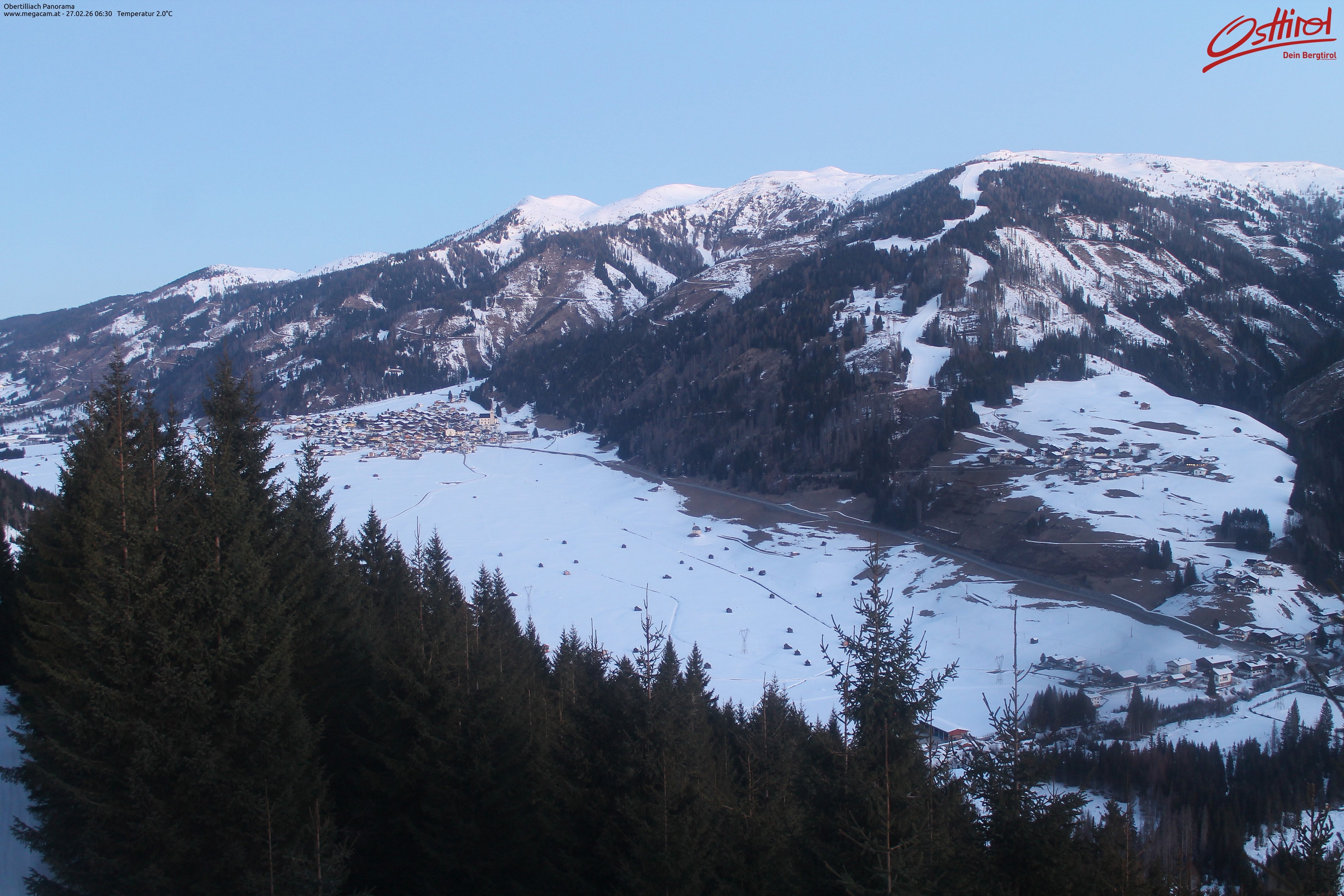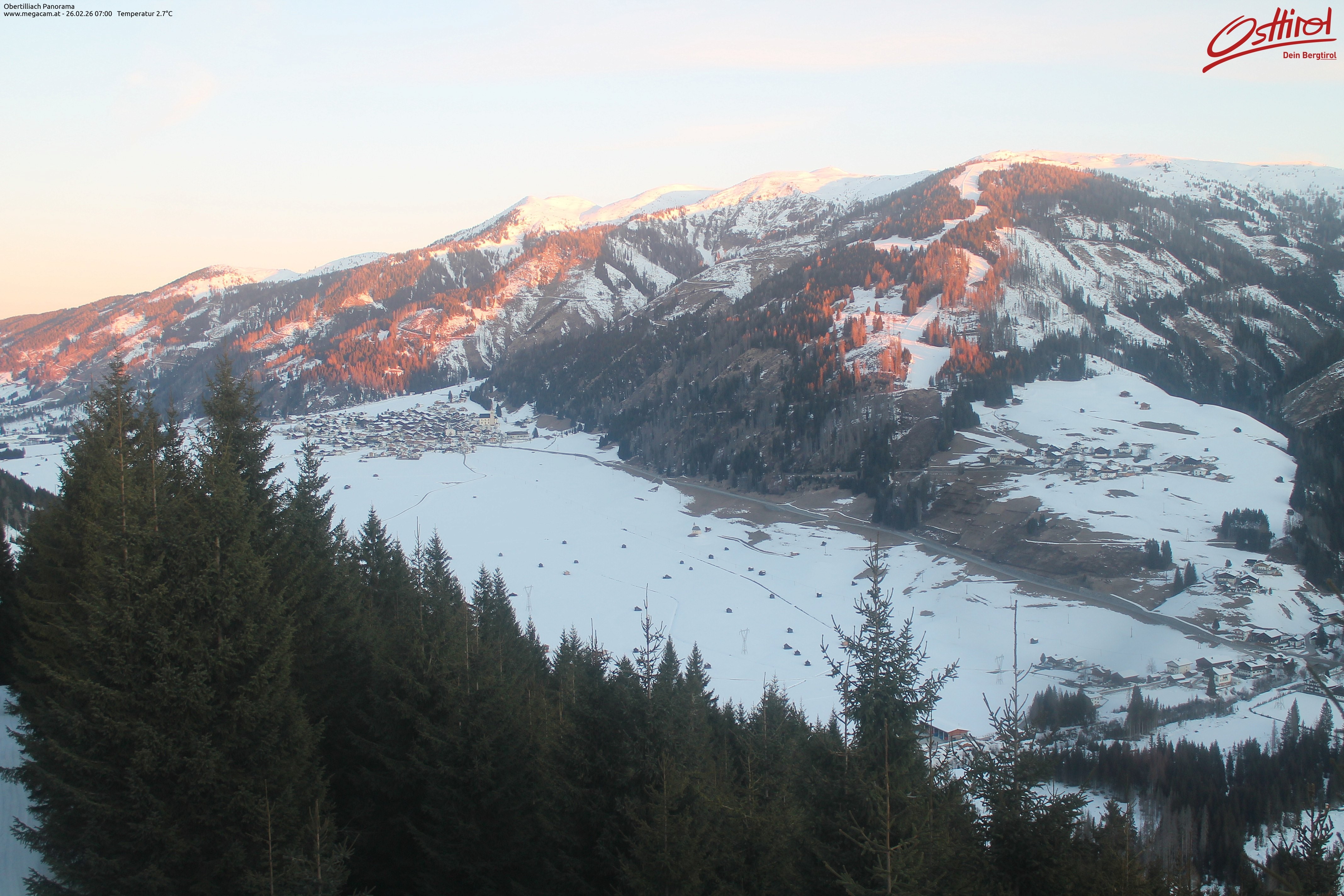 Archiviertes Webcam Bild: Obertilliach Panorama am 26 Feb 2026 um 07:05 Uhr 06:00