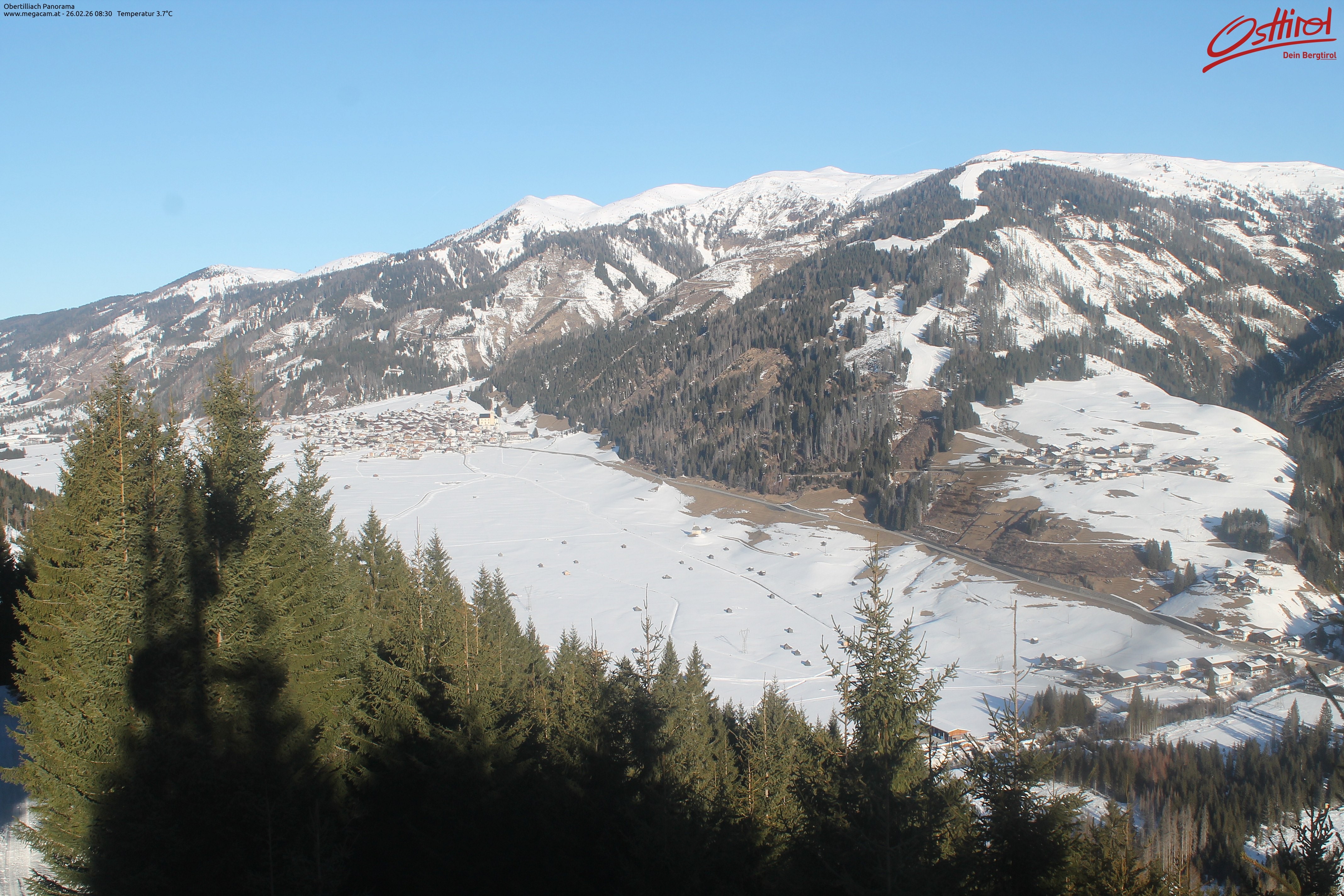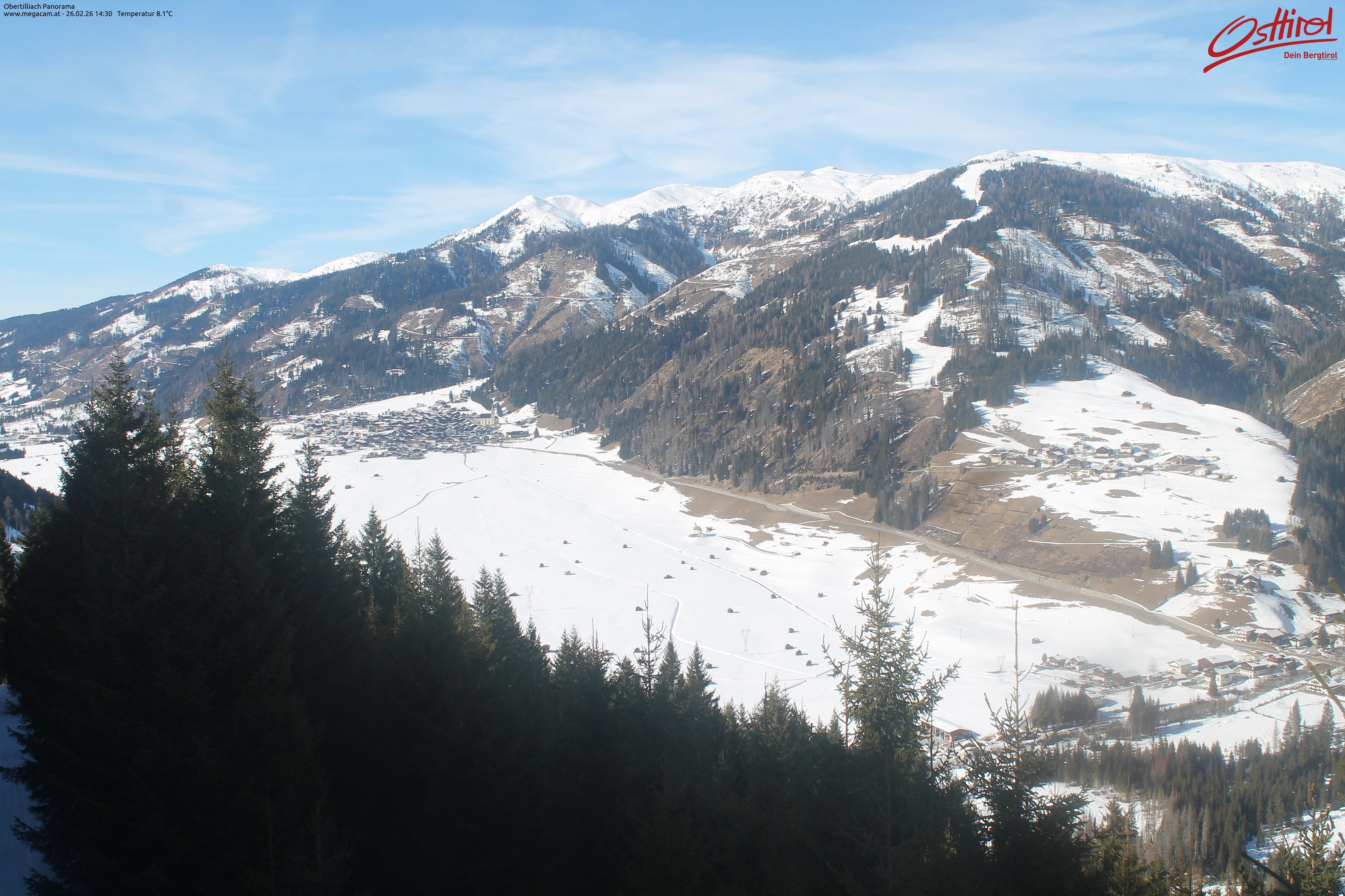 Archiviertes Webcam Bild: Obertilliach Panorama am 26 Feb 2026 um 08:05 Uhr 07:00