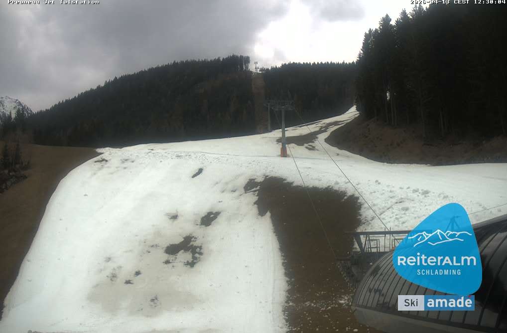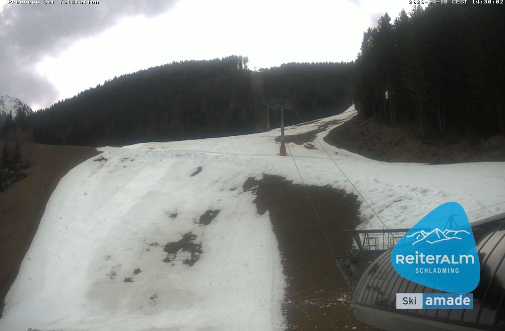 Archiviertes Webcam Bild: Reiteralm: Talstation Preunegg Jet am 13.04.2026 um 14:18 Uhr Aktuell