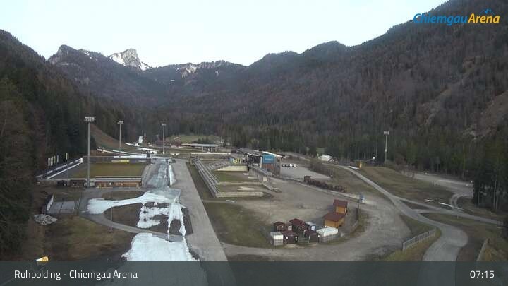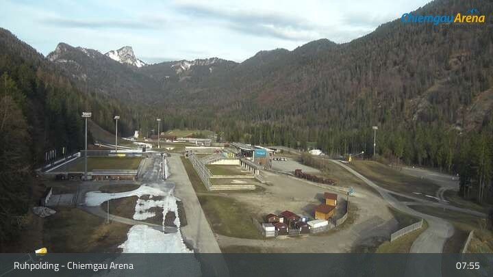 Webcamvideo aus der Chiemgau Arena in Ruhpolding. Dort sind jährlich die Biathleten im Rahmen des Weltcups zu Gast. Zu sehen ist neben dem Schießstand auch die Tribüne und die Strecke. Während der Wettkämpfe kann es aus Lizenzgründen zu Übertragungspausen kommen.