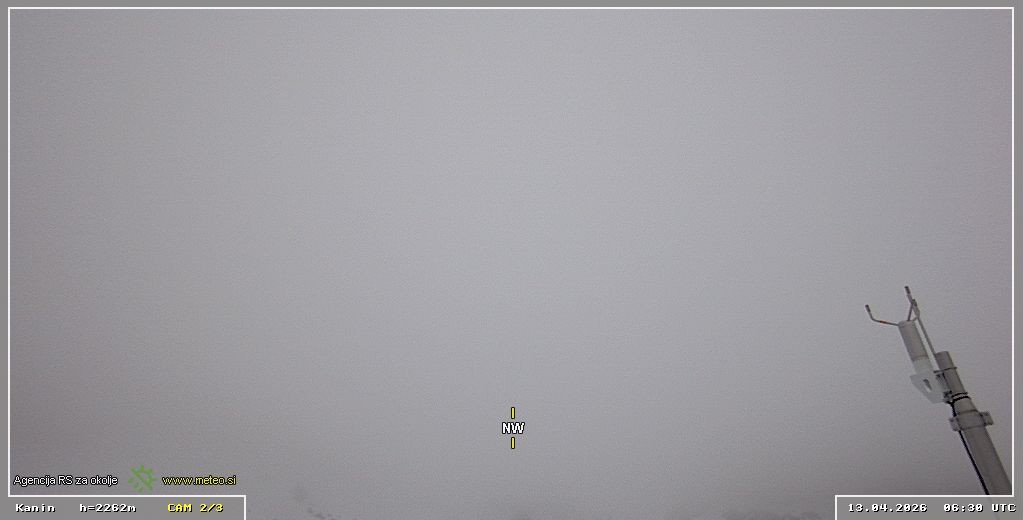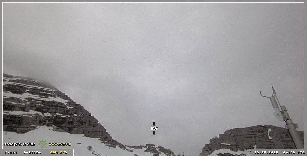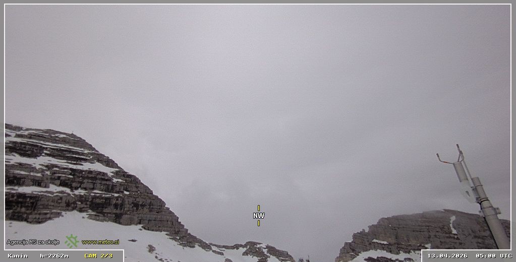 Archiviertes Webcam Bild: Skigebiet Sella Nevea - Bovec Kanin - Blick Richtung Nordwesten am 13.04.2026 um 07:27 Uhr 07:00