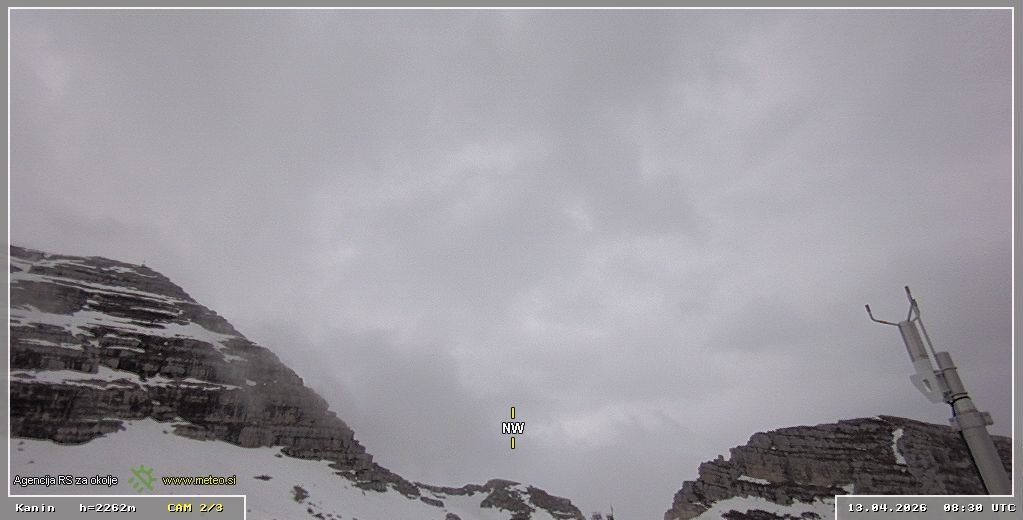 Archiviertes Webcam Bild: Skigebiet Sella Nevea - Bovec Kanin - Blick Richtung Nordwesten am 13.04.2026 um 08:27 Uhr 08:00