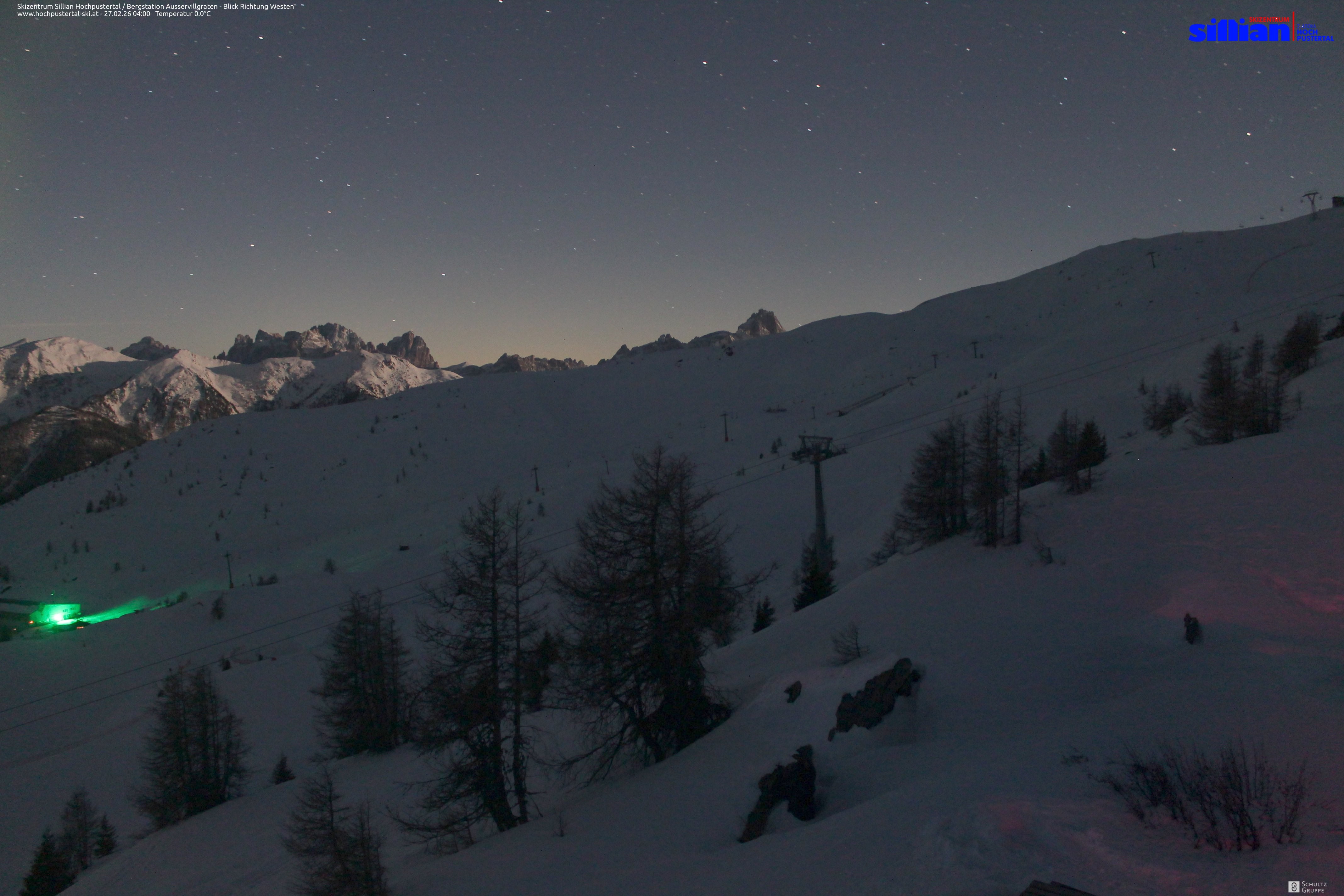 Archiviertes Webcam Bild: Ausservillgraten Bergstation am 27.02.2026 um 04:28 Uhr 04:00