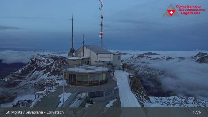 Toller Panoramablick von der Bergstation Corvatsch, dem mit 3303 Metern höchsten Punkt im Skigebiet.