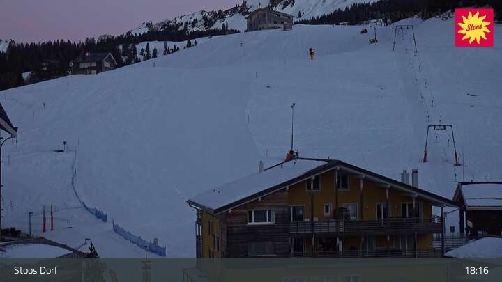 Archiviertes Webcam Bild: Blick ins Bergdorf Stoos am 26 Feb 2026 um 19:14 Uhr 18:00