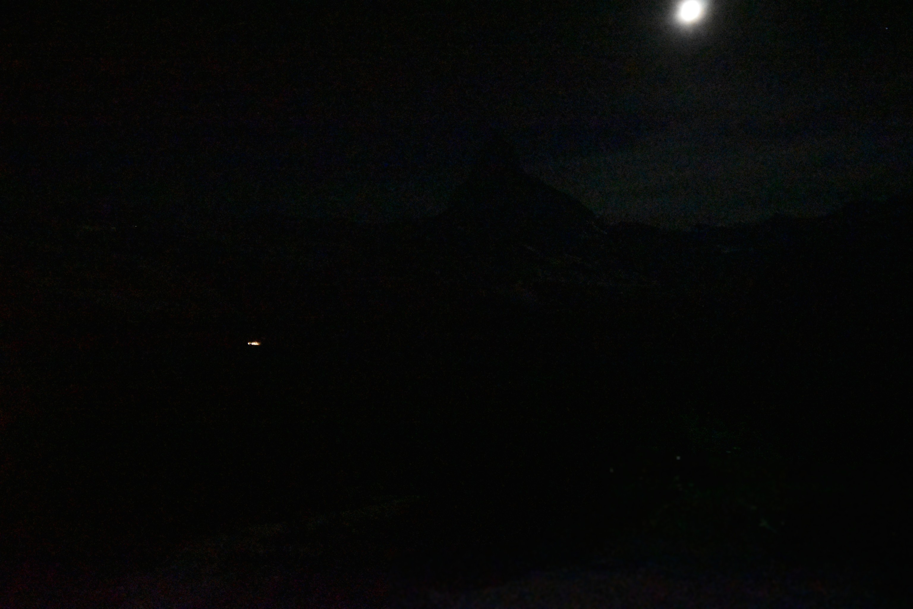 Blick von der Station Sunnegga im Rothorn-Gebiet. Im Hintergrund sieht man das Matterhorn und das Gebiet rund um Schwarzsee. Die Sunegga-Station erreicht man mit der unterirdischen Standseilbahn von Zermatt aus. Auf Sunnegga befindet sich auch das Zermatter Anfängerskigebiet.