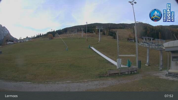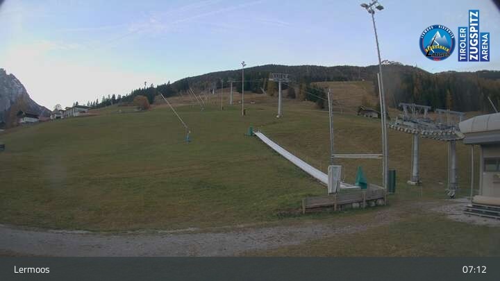 Die Webcam befindet sich im Skigebiet Lermoos in der Tiroler Zugspitz Arena. Zu sehen ist die Talstation des Familyjet.