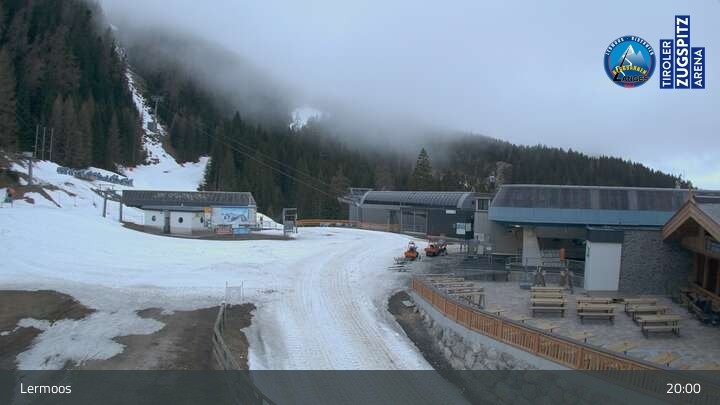 Hier siehst du die Bergstation des Hochmoos Express im Skigebiet Lermoos in der Tiroler Zugspitz Arena.