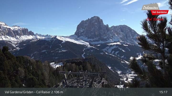 Die Livecam befindet sich auf dem Col Raiser in Gröden und blickt zu den Berggruppen Piz Sella, Ciampinoi, Lang- und Plattkofel sowie zur Seiser Alm und zur Sellagruppe.