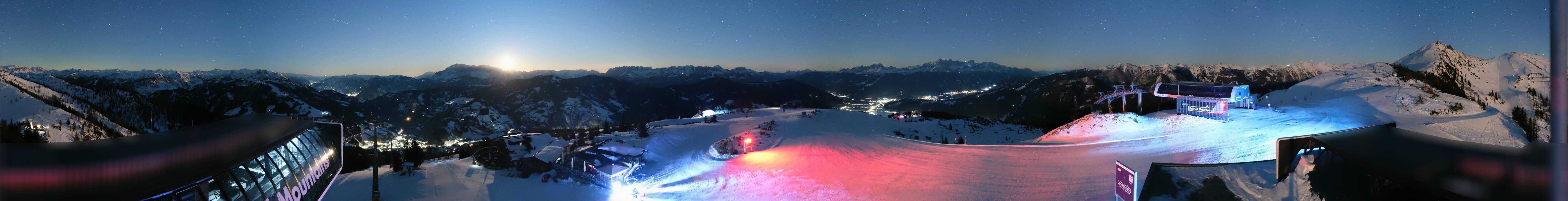 Die Webcam befindet sich an der Bergstation der Gondelbahn Flying Mozart im Skigebiet Snow Space Salzburg bei Wagrain. Zu sehen sind u.a. die Kogelalm und das Gipfelstadl sowie die Koglalmbahn, die Starjet3-Bergstation und die Panorama-Link-Bahn.
