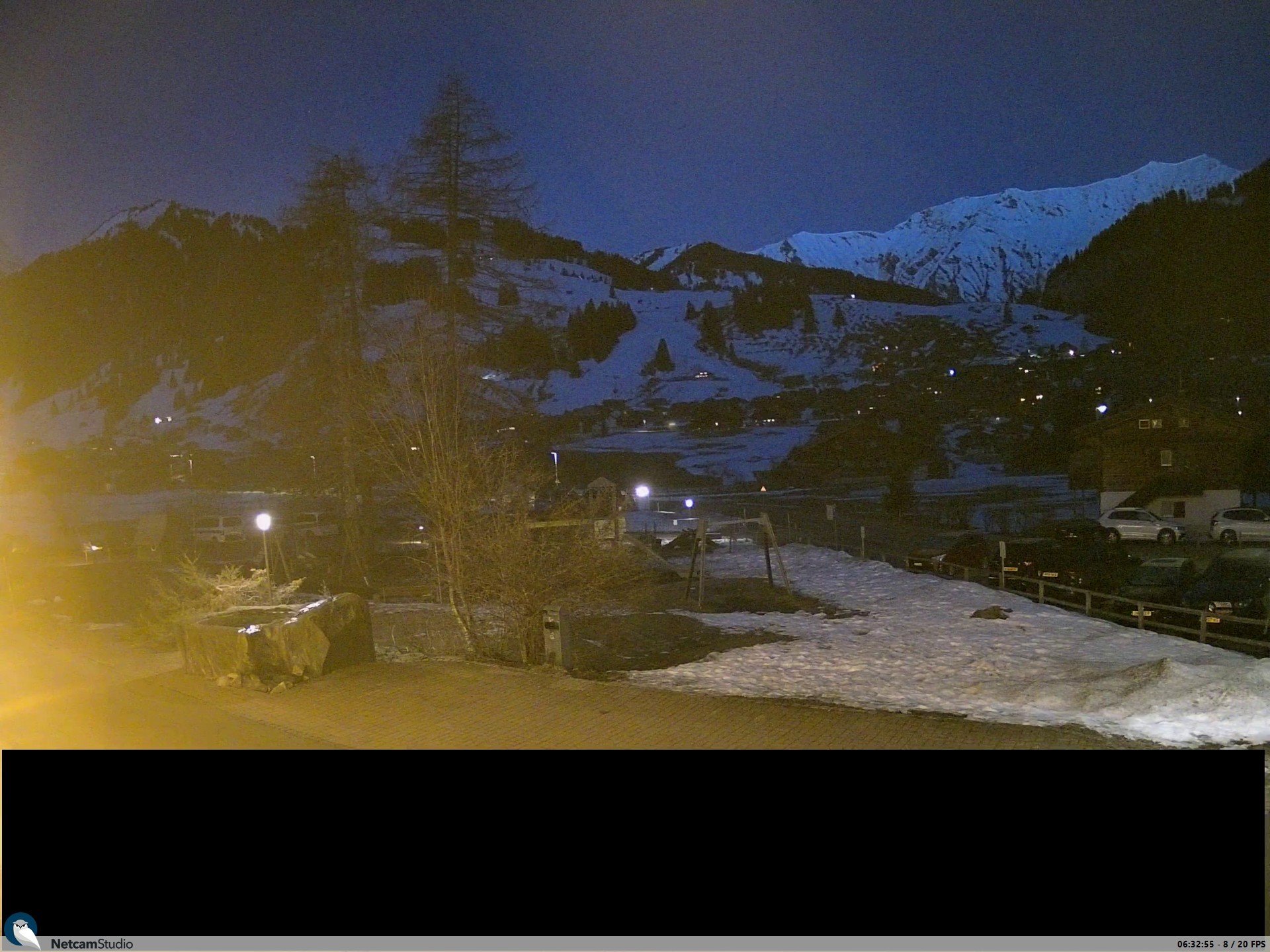 Archiviertes Webcam Bild: Adelboden: Blick Hotel Alpina zum Weltcuphang am 27.02.2026 um 04:36 Uhr 04:00