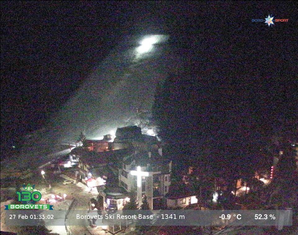 Archived webcam image showing Borovets Ski Resort Base II on 27 Feb 2026 at 02:29 02:00