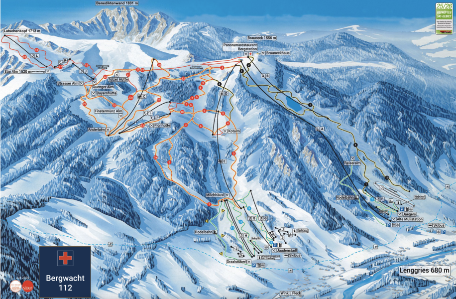 - Mit 31 km Pisten ist Brauneck - Lenggries unter den 10 größten Skigebieten in Deutschland.