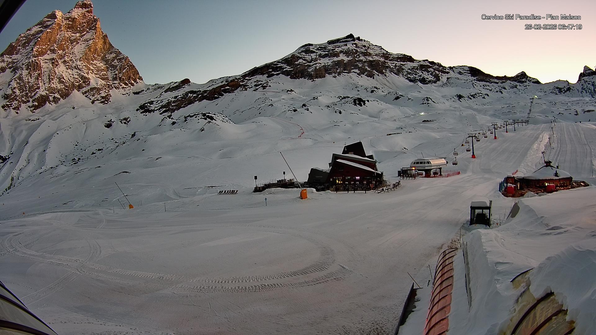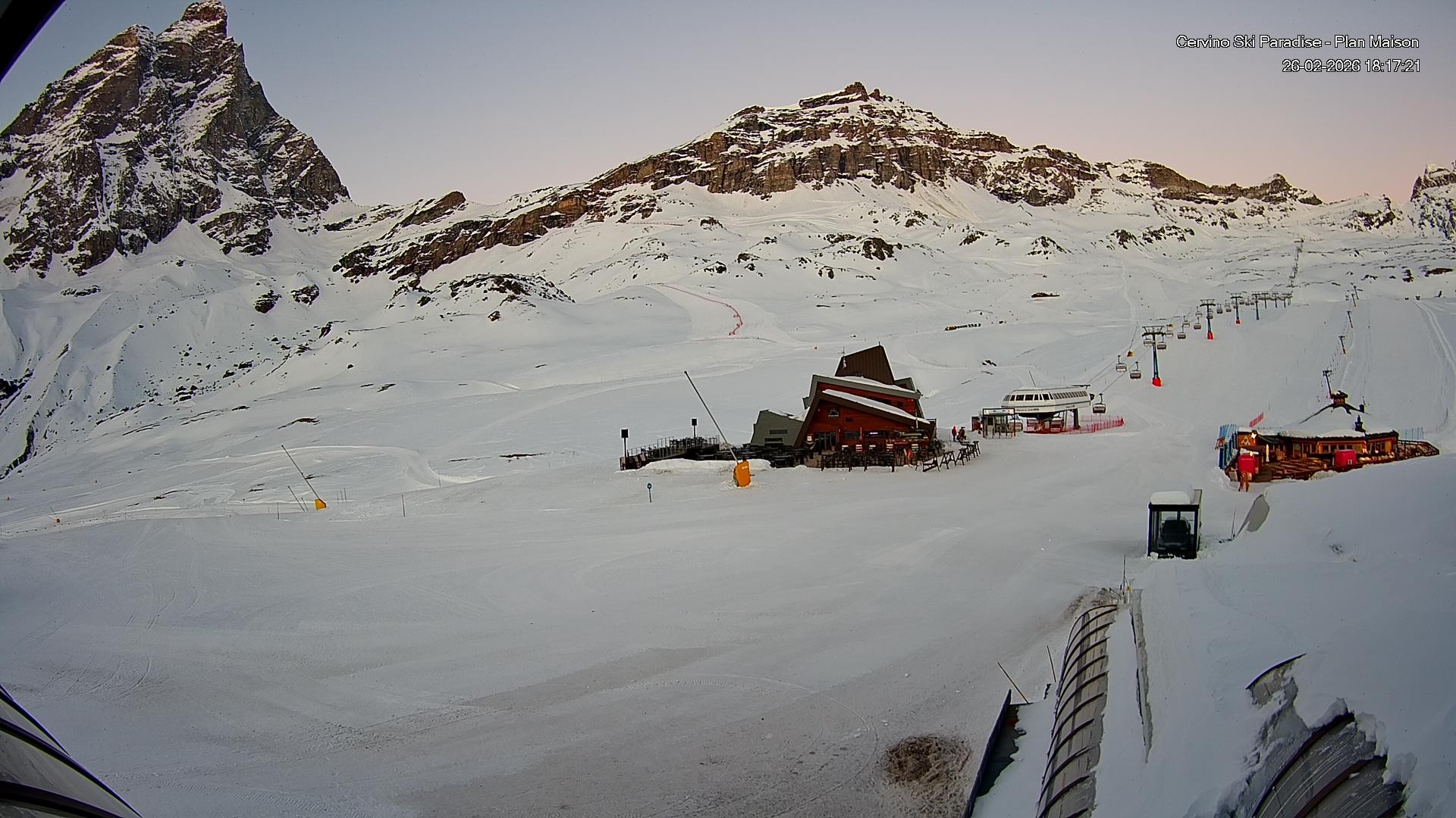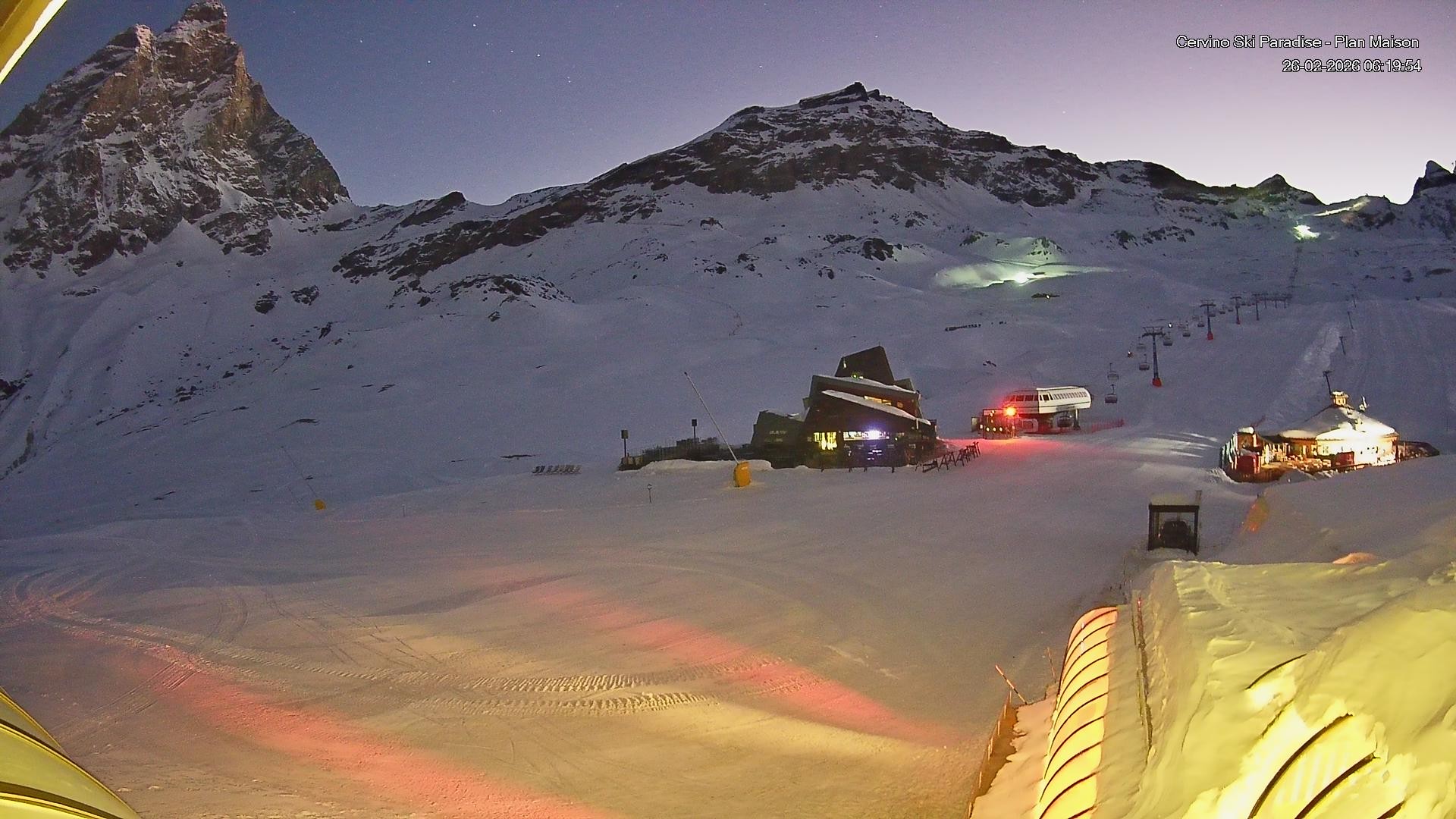 Archived webcam image showing Plan Maison / Breuil Cervinia on 26 Feb 2026 at 06:53 05:00