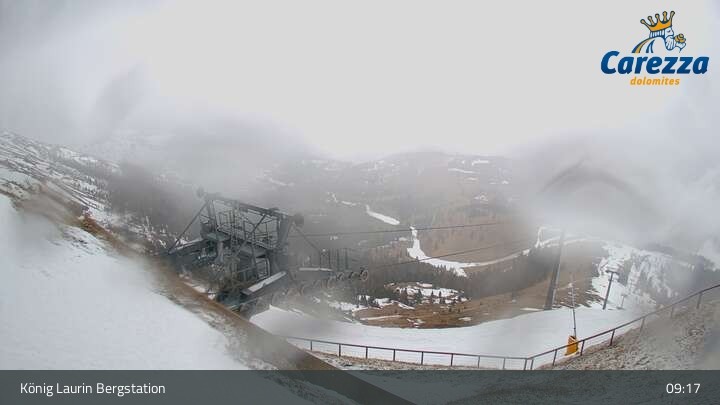 Webcam Carezza: Kölner Hütte und Bergstation König Laurin, 2,337 m