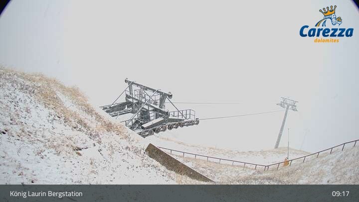 Webcam Carezza: Kölner Hütte und Bergstation König Laurin, 2,337 m
