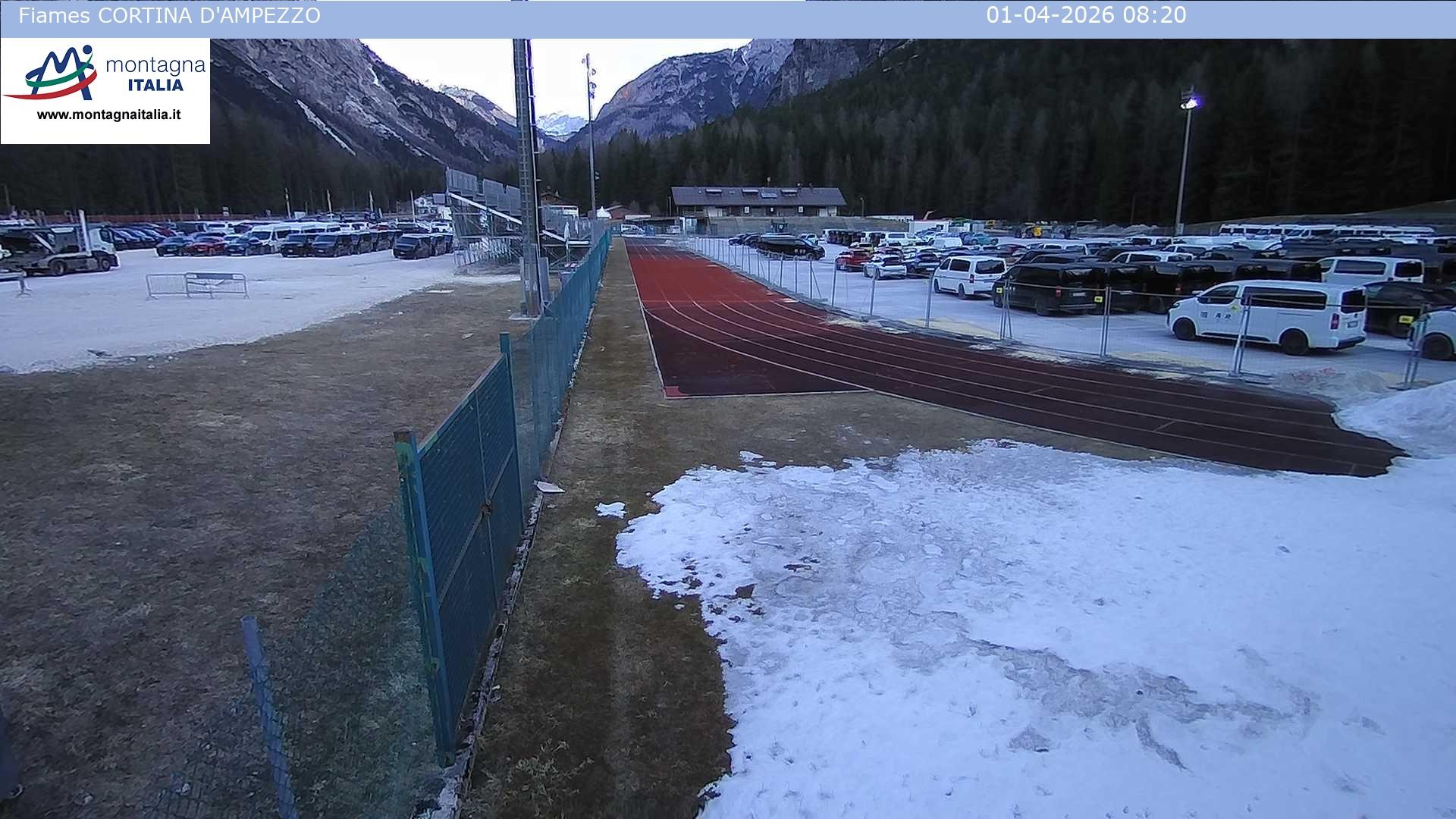 Archived webcam image showing Cortina: Nordic Center Fiames on 1 Apr 2026 at 08:32 07:00