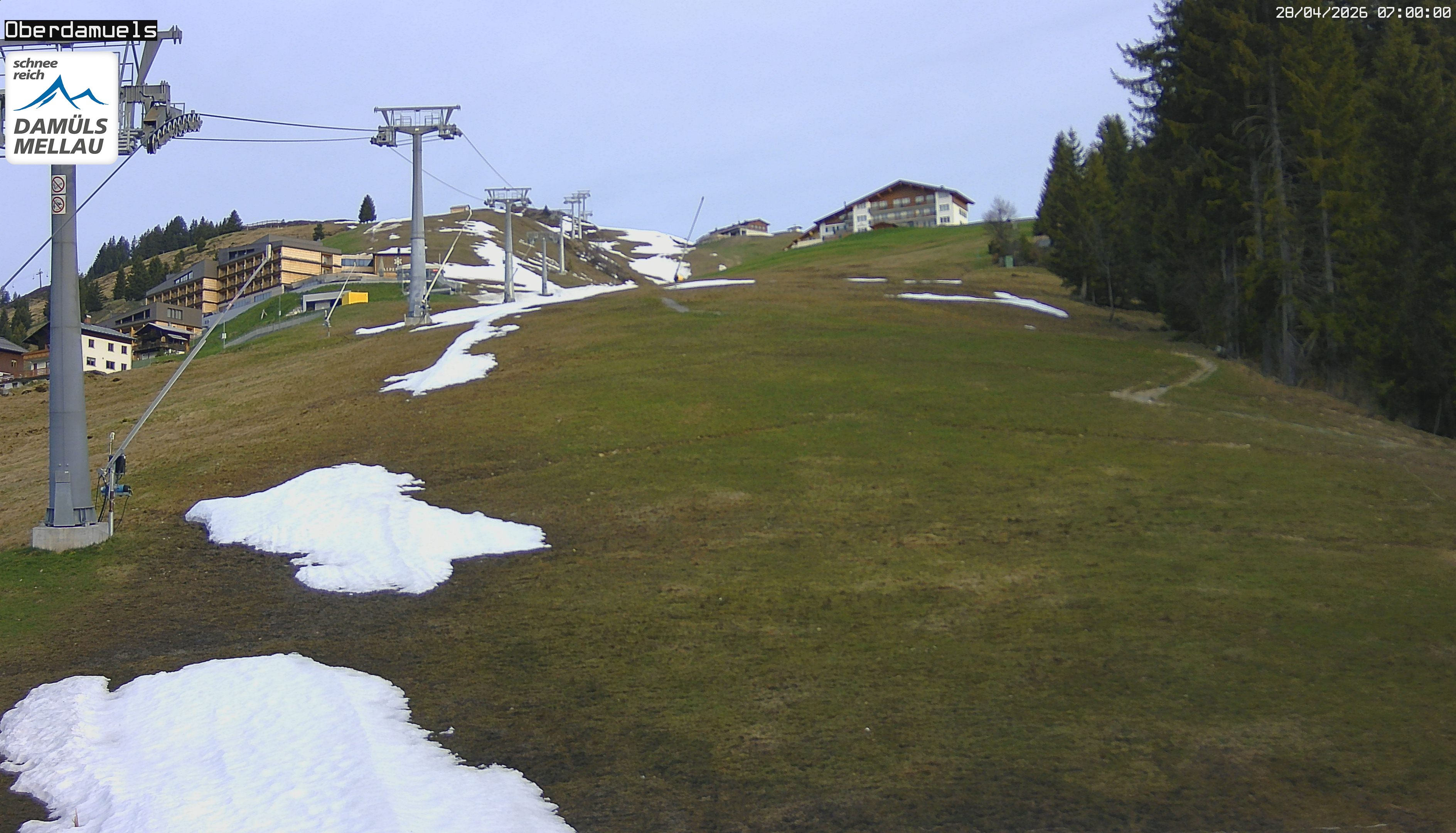 Archiviertes Webcam Bild: Damüls: Webcam Talstation Oberdamüls am 28.04.2026 um 07:44 Uhr 07:00