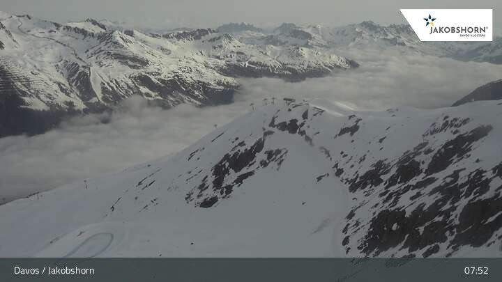 Archiviertes Webcam Bild: Davos: Jakobshorn (2590 m) am 12.04.2026 um 08:10 Uhr 08:00