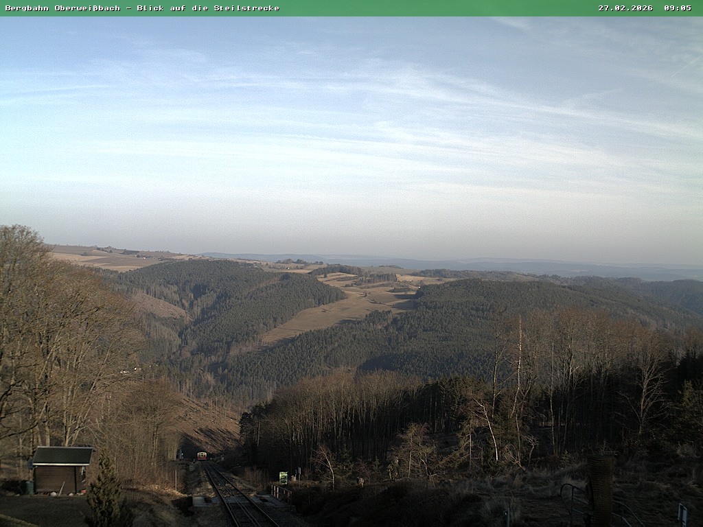 Diese Webcam zeigt auf die Strecke der Oberweißbach Bergbahn, eine Bahnstrecke im Thüringer Schiefergebirge.