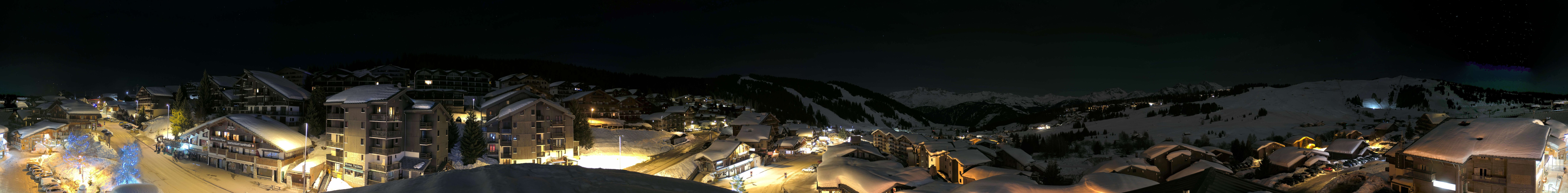 Die Webcam zeigt den Blick auf die französische Ortschaft Les Saisies. Der Ort ist Ausgangspunkt für das gleichnamige Skigebiet in der Region Rhône-Alpes.