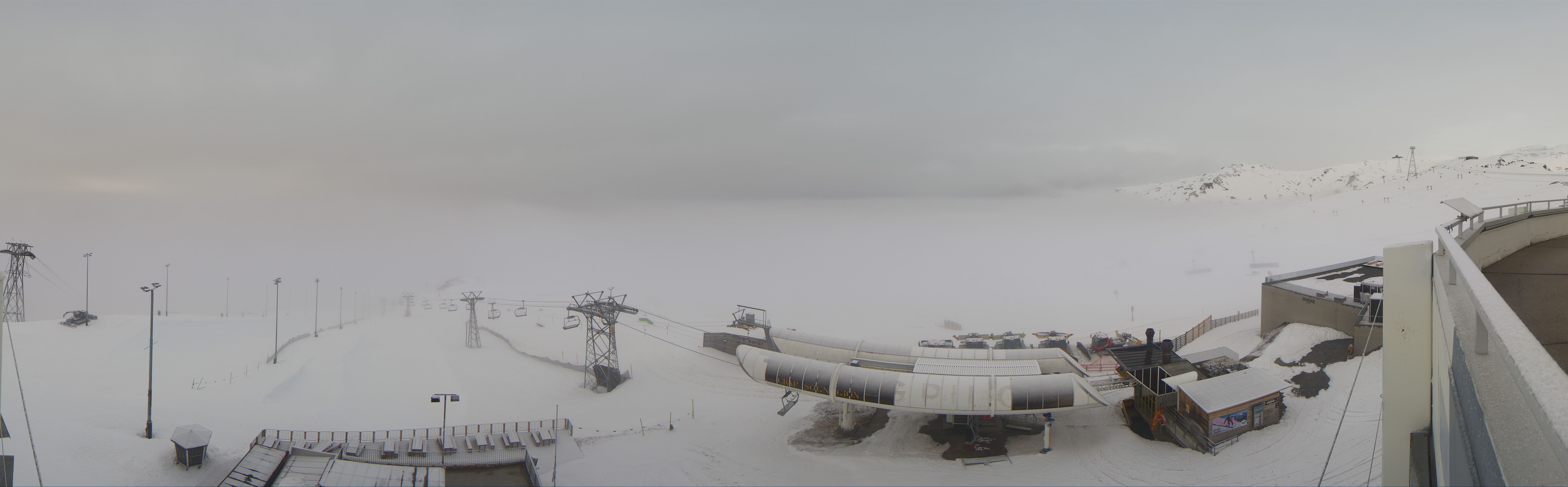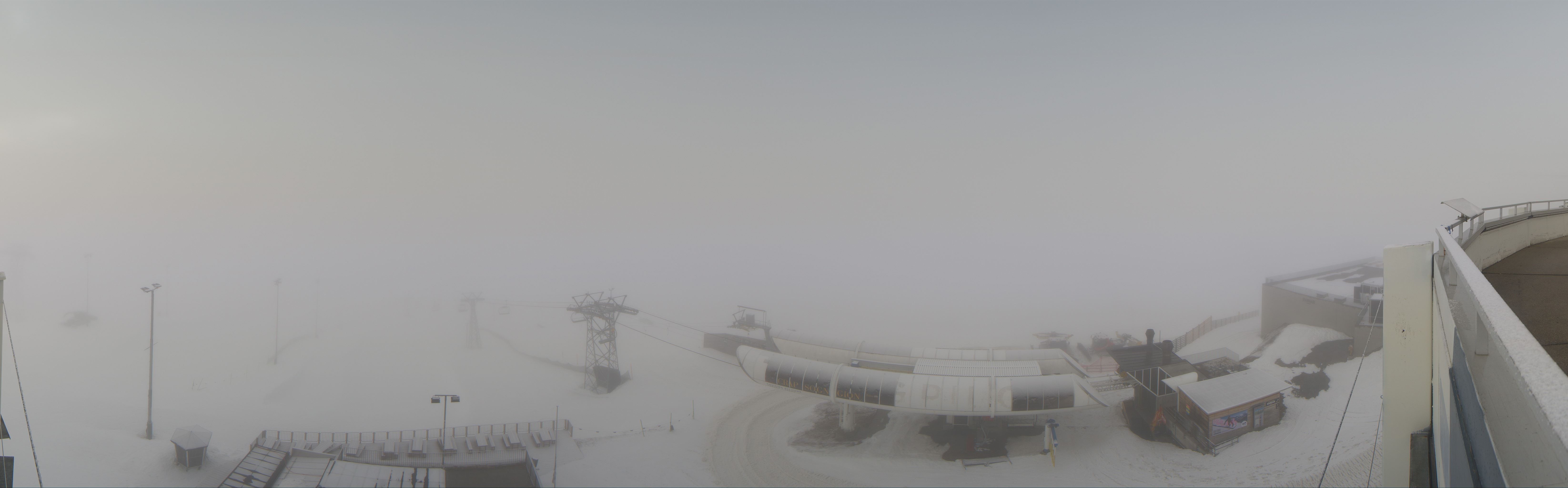 Direkt an der Bergstation des Curnius Sessellifts im Schweizer Skigebiet Laax gelegen, bietet die Roundshot-Cam einen fantastischen 360-Grad-Blick auf den Snowpark am Crap Sogn Gion.